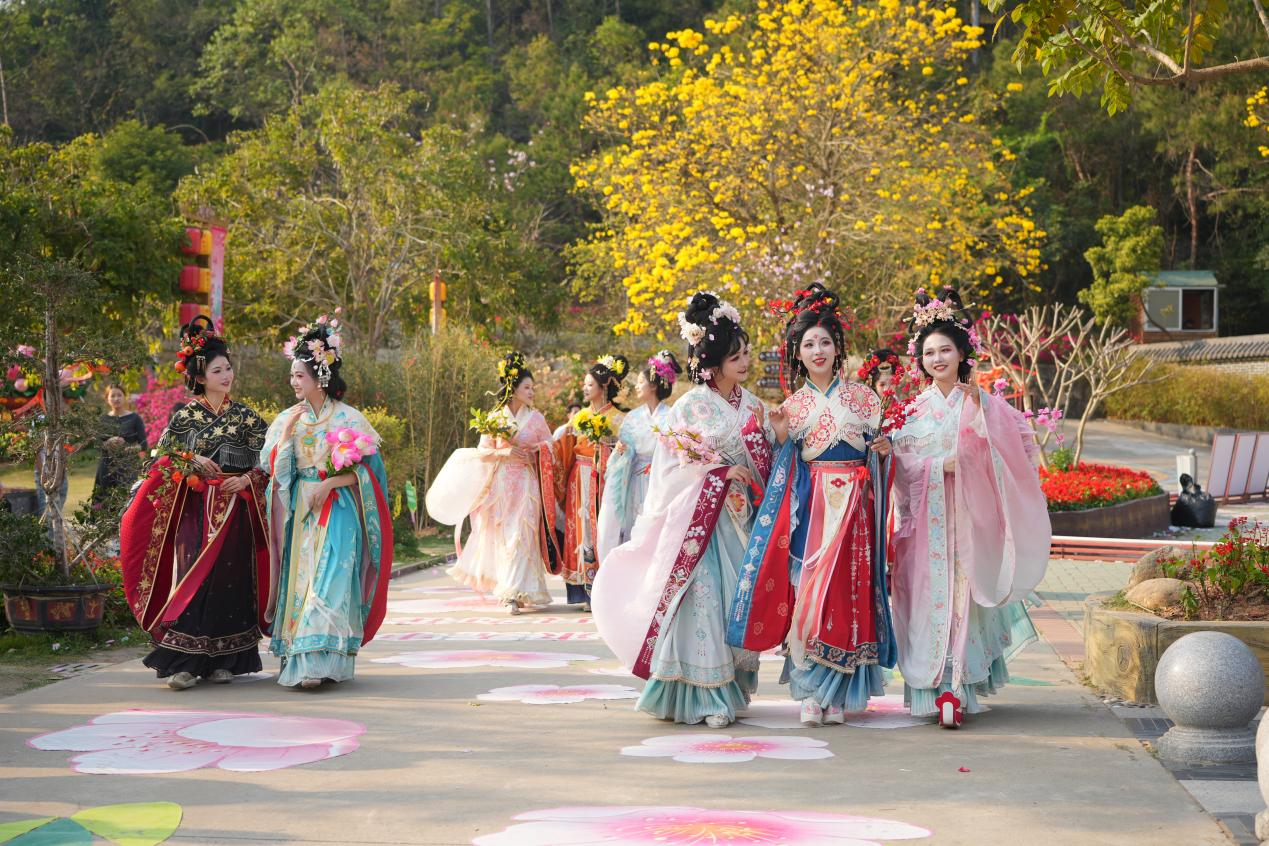 作为东莞标志性民俗文化IP,观音山花朝节已连续举办了五届,成为市民踏青赏春、感受传统文化的优选品牌。本届花朝节以传承花朝民俗、焕新国潮体验为核心,推出十二花神巡游、古风卖花郎、专属花币、盖章集邮打卡、投壶、锤丸等多元体验,全方位还原传统花朝节的雅致与热闹。