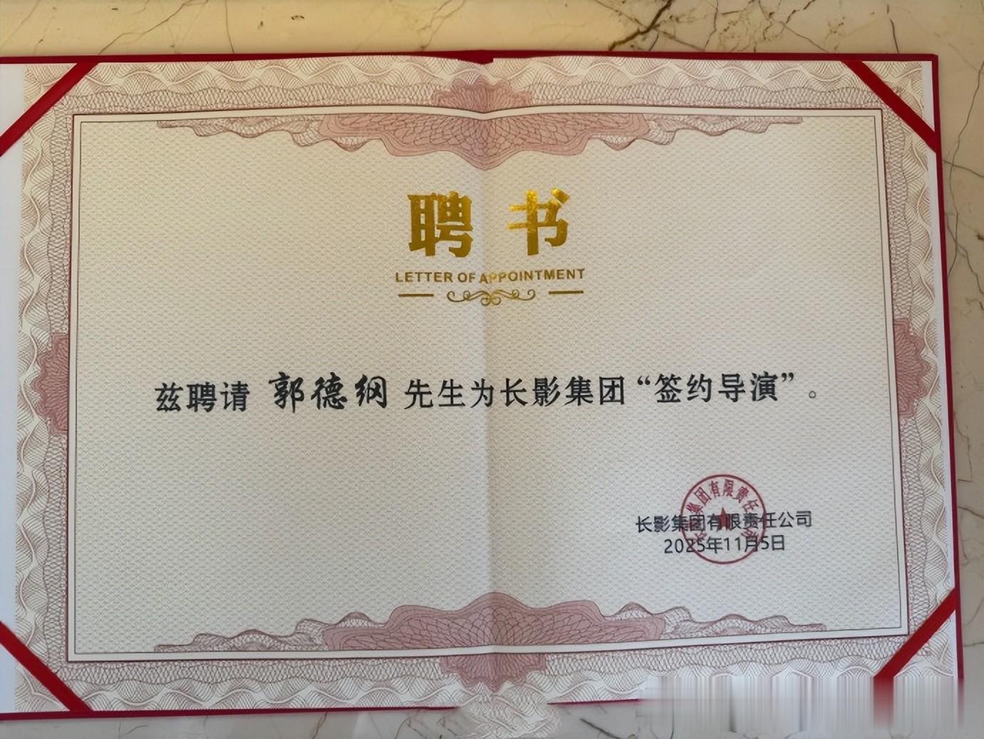 一组九宫格照,八张照片是聘书、牌匾,一张是昨晚麒麟剧社的幕后背影照。聘书、牌匾都很正规、精美。第一份,是来自长影集团的聘书,聘请郭德纲为长影集团的“签约导演”。长影集团的前身是长春电影制片厂,是新中国的第一家电影制片厂。《开国大典》、《平原游击队》等经典影片都是该厂创作的。长影集团能够向郭德纲抛出橄榄枝,能够聘请郭德纲为“签约导演”,这是对郭德纲创作、导演等能力的认可。