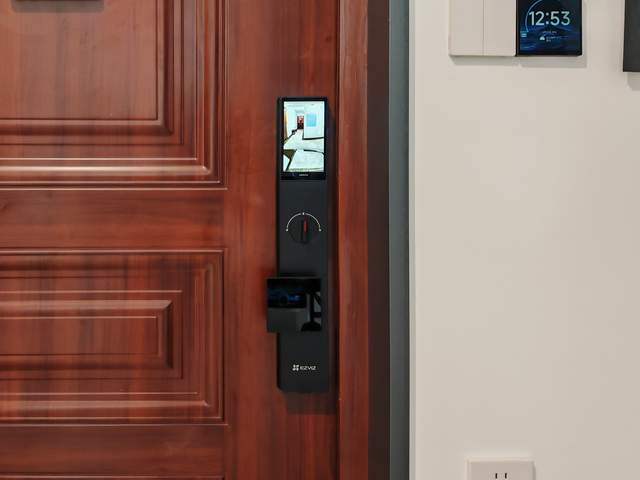 解锁方面,它摒弃了传统的指纹解锁,而是采用了人脸识别和掌静脉识别相结合的方式,第一个好处就是老人和小孩解锁入户更方便了,以前的指纹锁因为孩子指纹比较浅,识别时常失灵,老人更是因为指纹不清晰,连录入都很难,更别说识别了。但是萤石启明Y5000FVX只需要四个方向录入人脸,就可以做到无感开锁,配合自带的雷达功能,走到门前门锁自动打开,手里拎满东西也能直接走进家里。人脸解锁的识别率和安全性也不用担心,采用的是萤石自研的双目3D人脸识别模组,支持红外补光和活体检测,不受光线环境影响,化妆换发型都不影响识别,也能杜绝照片、视频等方式解锁。