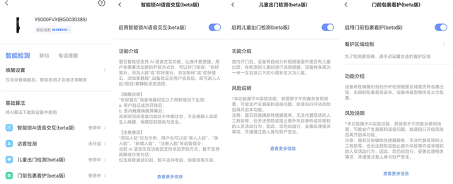 现在还有很多高级的AI功能,比如之前说到的AI语音交互,以及访客检测,儿童出门检测和门前包裹看护等,实现更加安全的入户体验。还能提供比如挟持警告,异常开门警告,密码改动警告等功能,大幅提高安全性。