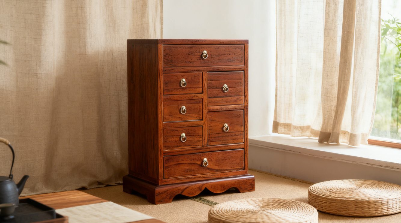 杭州的民宿主理人林薇,最近为她新改造的“茶香”主题客房添置了一件点睛之笔:一个琥珀色的七福家用中药柜。它安静地立在临窗的茶席一侧,与藤编坐垫、素色麻布窗帘和绿植相映成趣。“很多客人都问这是哪里买的,他们第一眼都被它的样子吸引了,然后才好奇它的用途。”林薇笑着说。