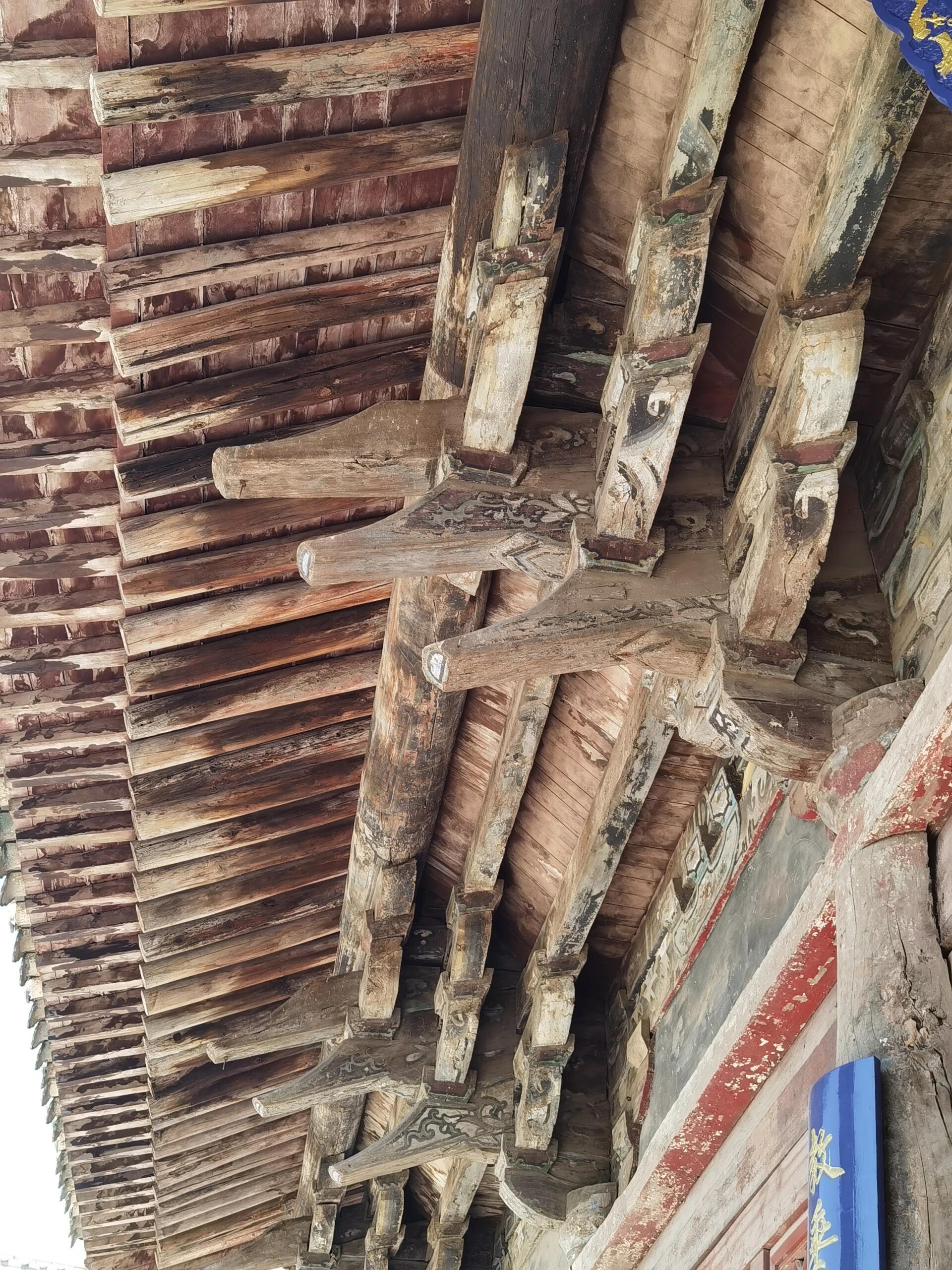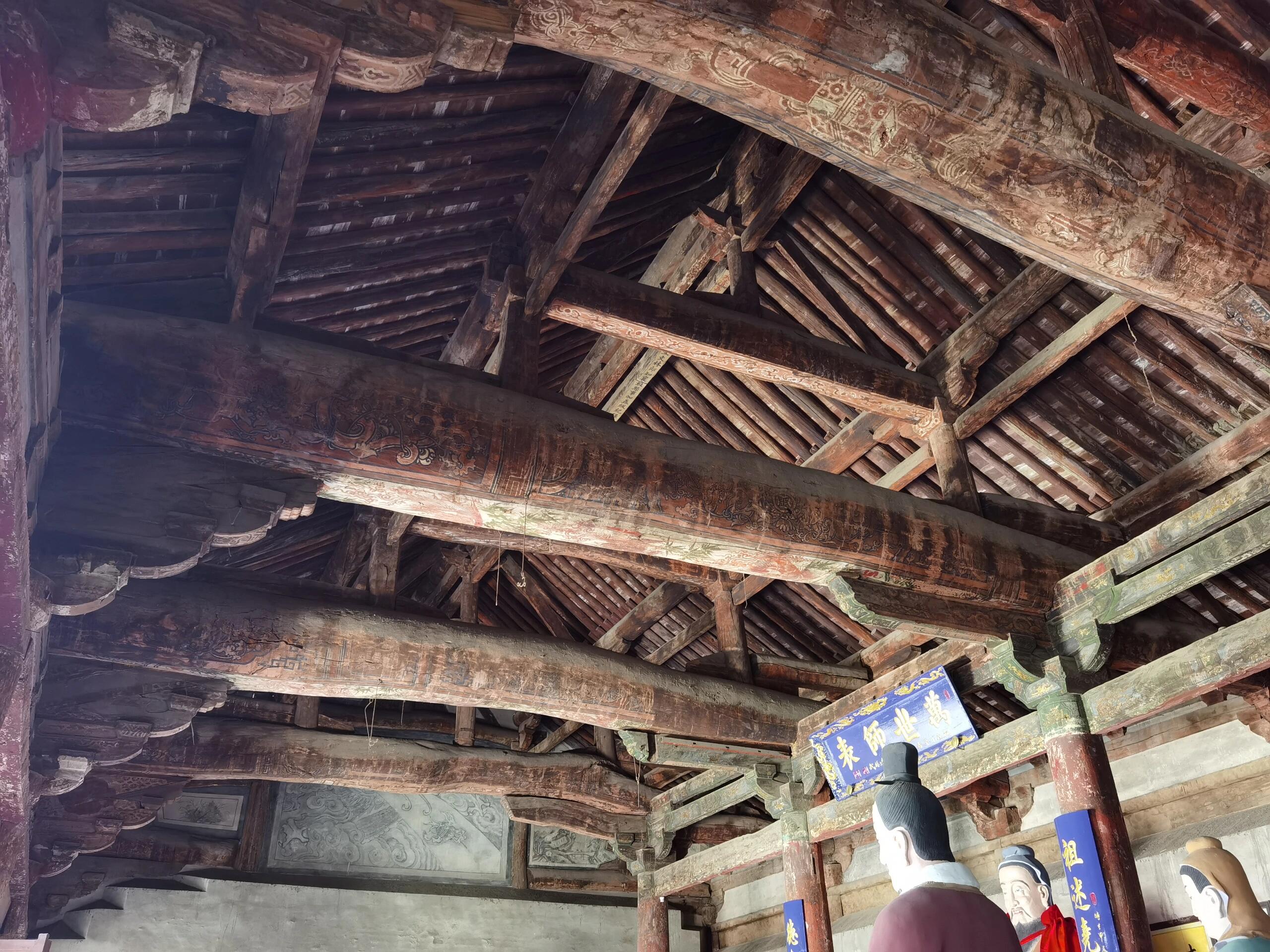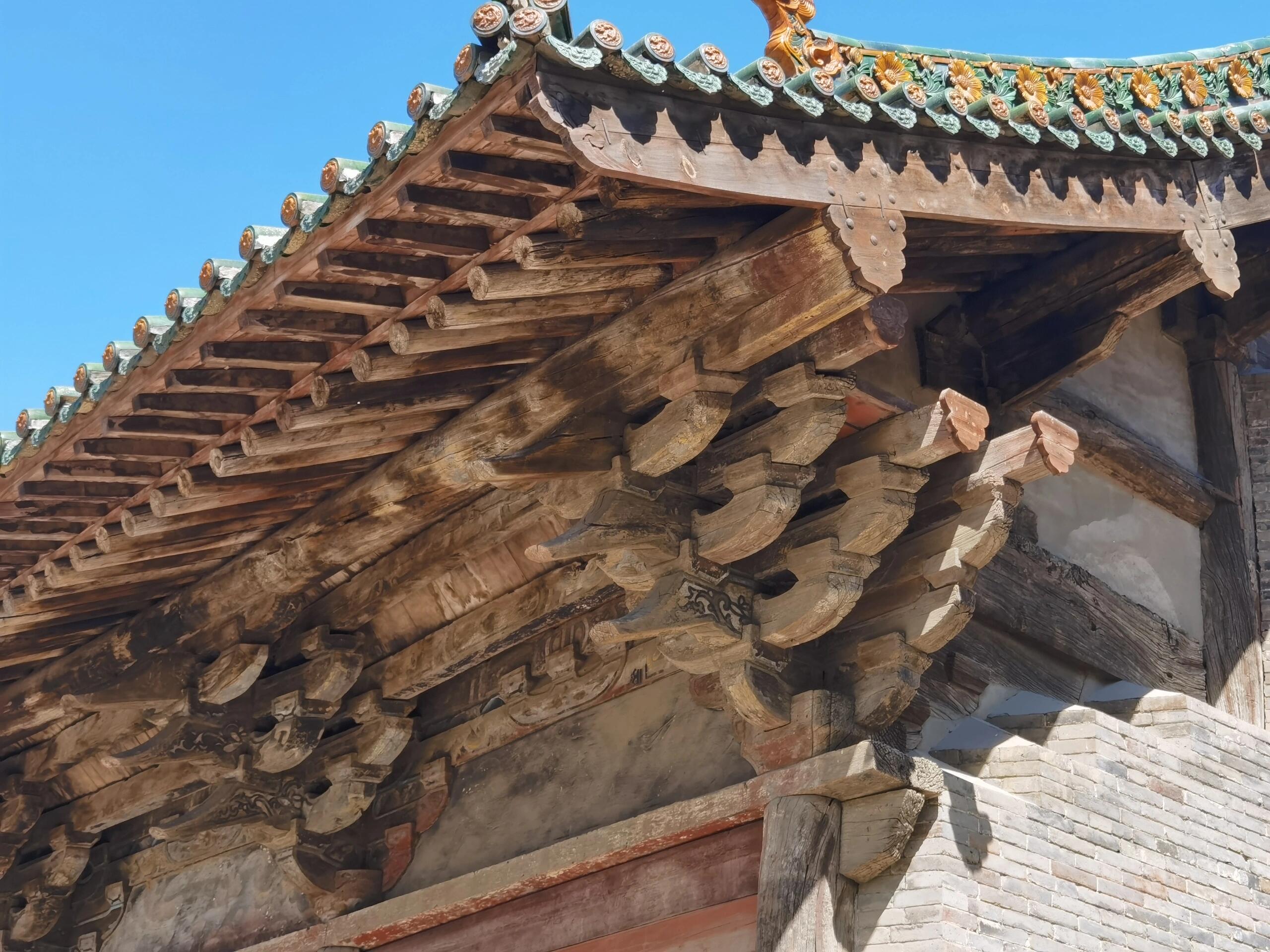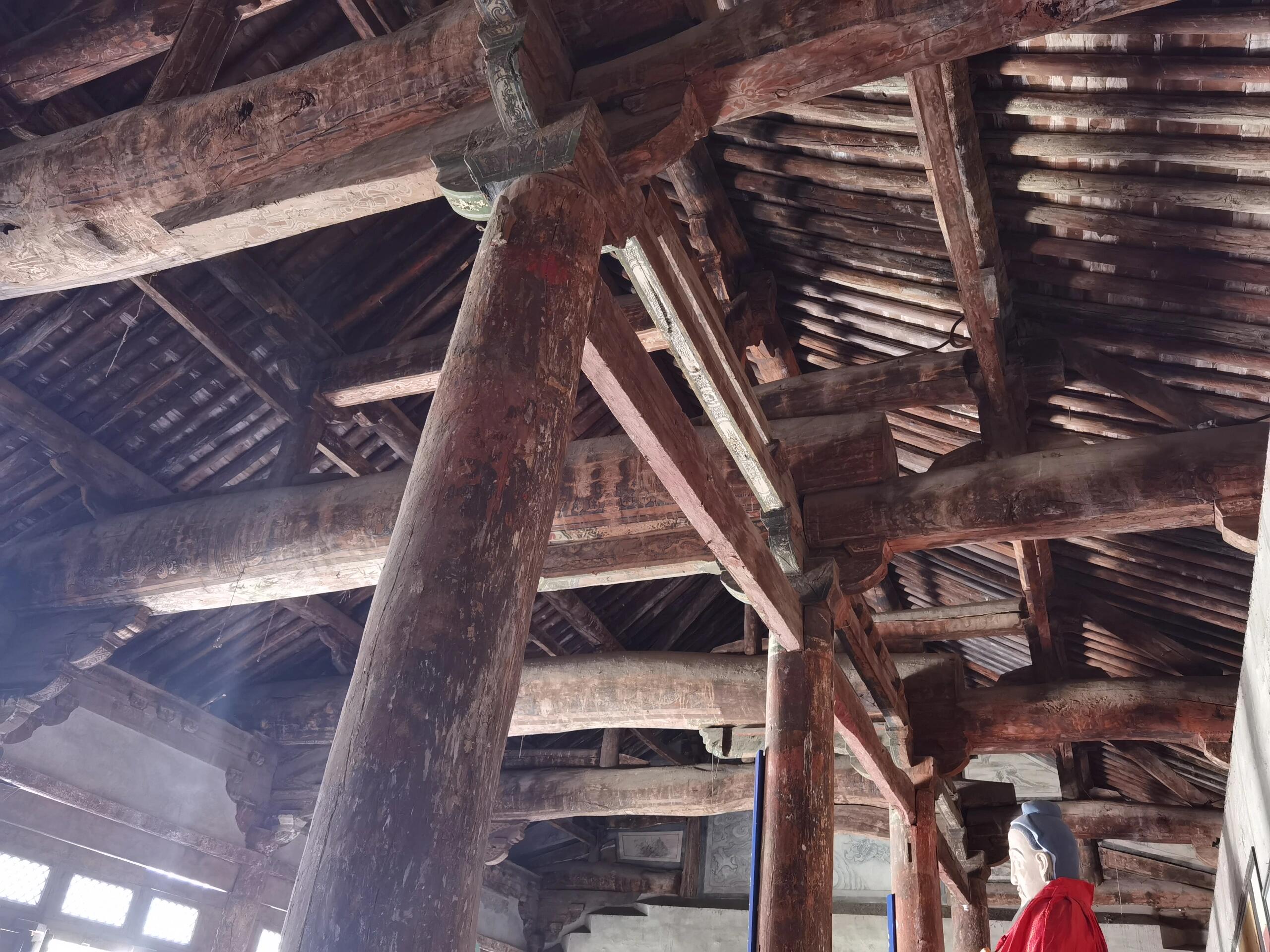 绕过这座民国建筑继续前行,才见到文庙的主角——大成殿。这座元代遗构稳稳当当地立在高台之上,面阔五间,进深六椽,单檐悬山顶的造型古朴大气。抬眼望去,粗壮的立柱支撑着厚重的屋檐,斗拱层层叠叠,错落有致地排列着。虽历经数百年风雨,木构件上的雕刻依然清晰可见,那些花卉、云纹图案,每一笔都透着元代工匠的精湛技艺。走进殿内,空间开阔敞亮,梁架结构一目了然,没有过多的装饰,却以简洁有力的线条,展现出元代建筑雄浑大气的风格。