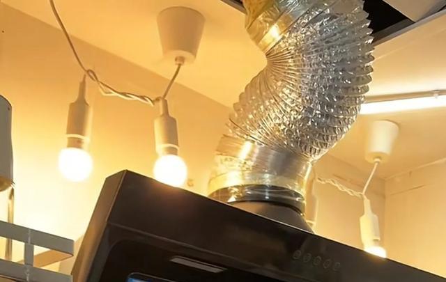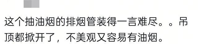 而且阿雅家的排烟管直接掀开了吊顶,把吊顶都破坏了,吊顶上方直接被掀开了两格,露出黑黢黢的一块儿,看着一点的都不美观。