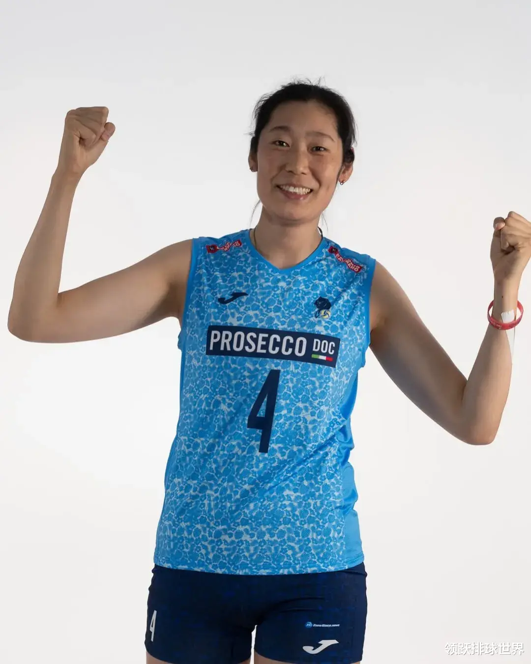 朱婷穿上蓝色战袍,冷静沉稳、气场全开。作为球队核心,她的蓝色4号战衣采用类似水波纹设计,寓意深厚的力量与沉着的统治力,蓝中带稳,静中含力。
