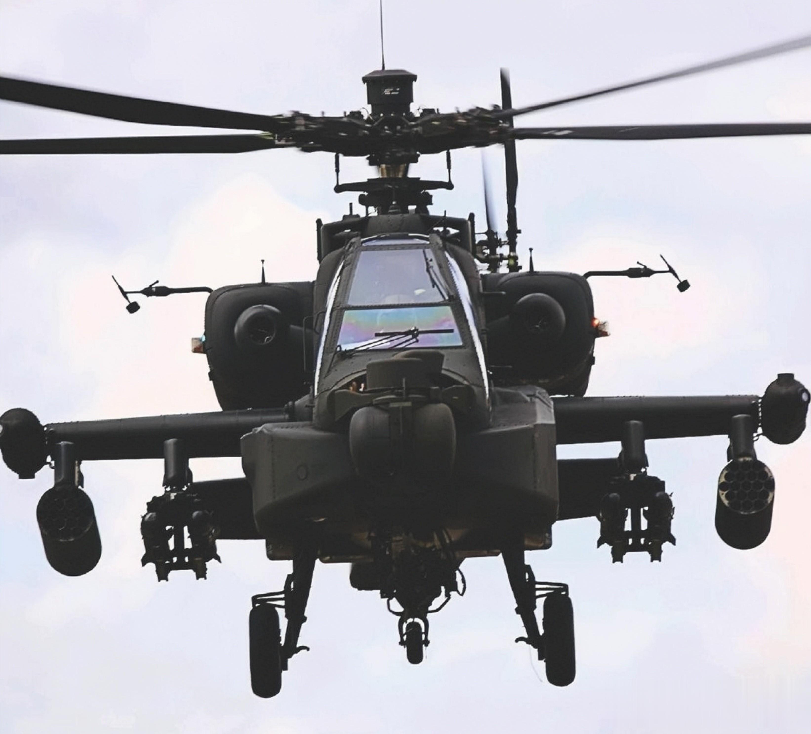 AH-64D——最新的改进型,在主旋翼上方安装了“长弓”雷达。