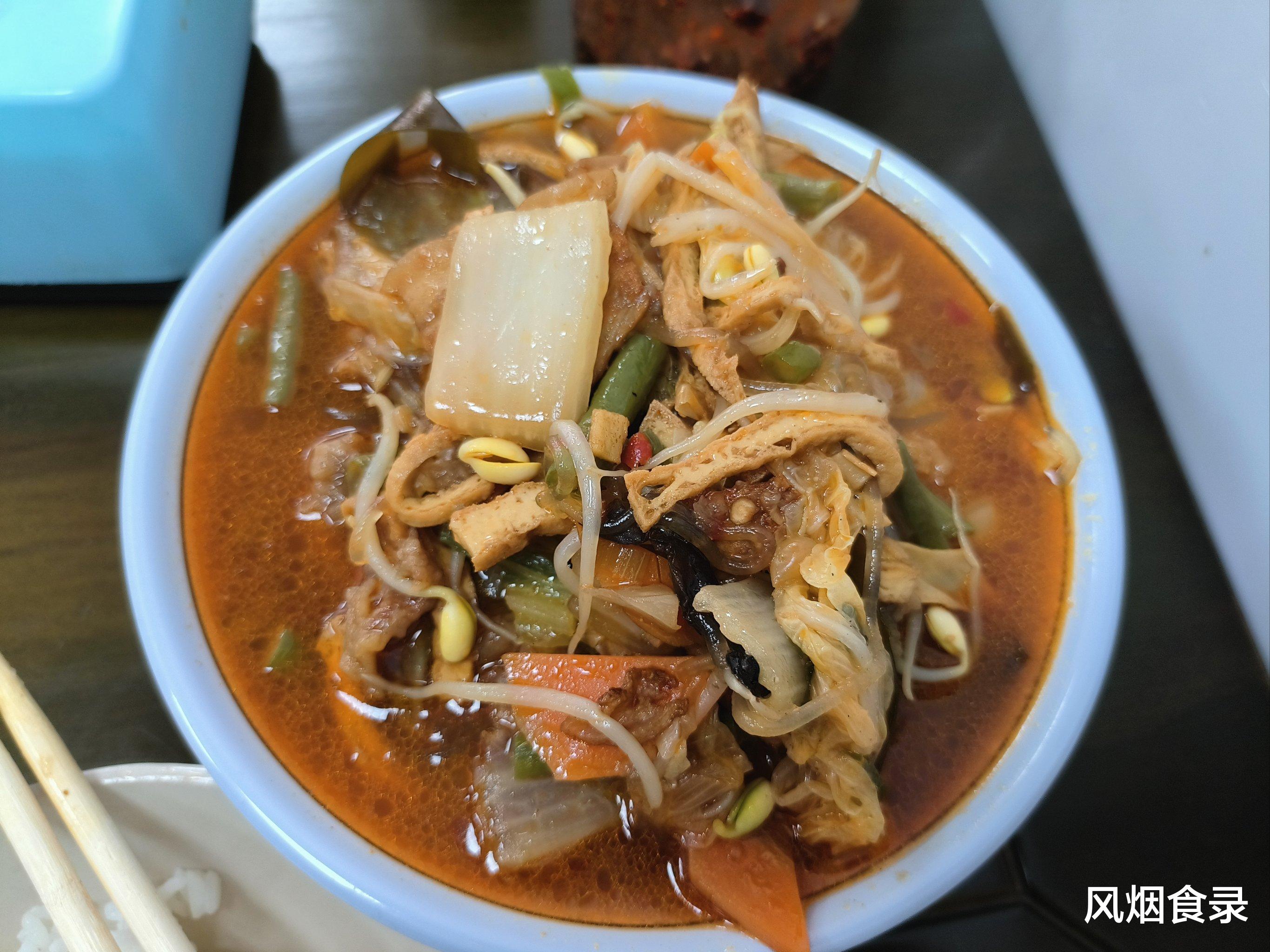 这菜荤素搭配,酥肉、丸子、扁垛、粉条浸在鲜香汤里,入口酥脆与绵软交织,咸鲜不腻。