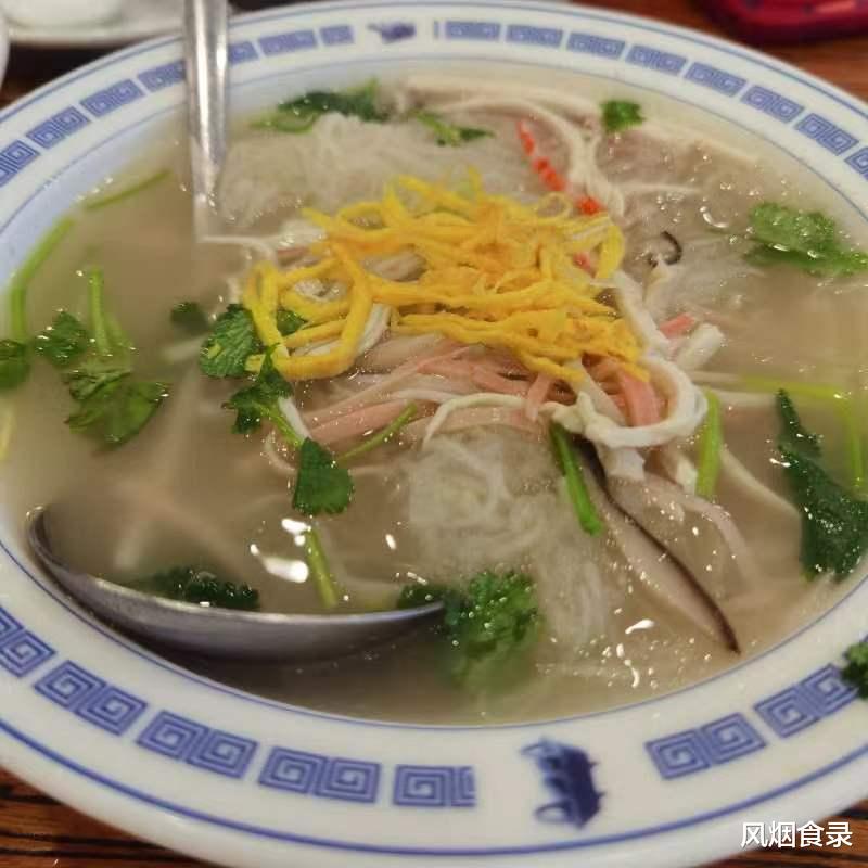 用鲍鱼牛肉吊汤,刀工细得能穿针,汤清得能照见人影,