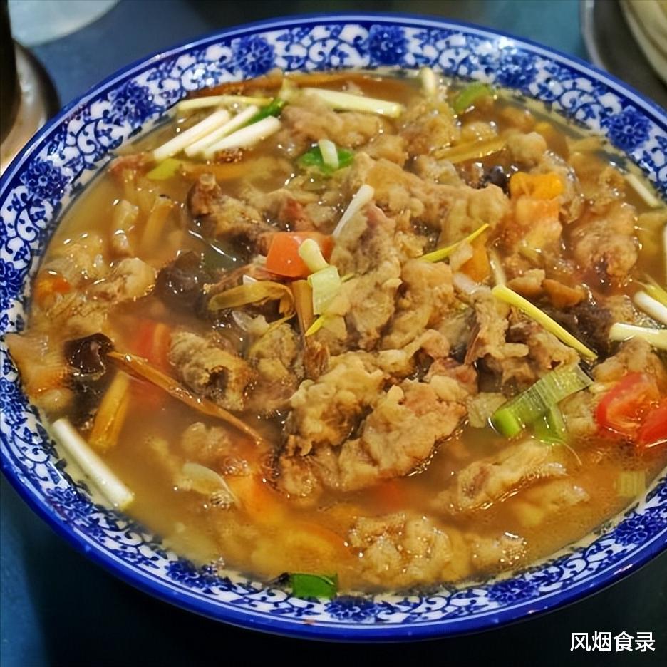 这汤头始于唐代,袁天罡为武则天称帝设二十四道菜,连汤肉片作尾,暗喻“功成身退”。