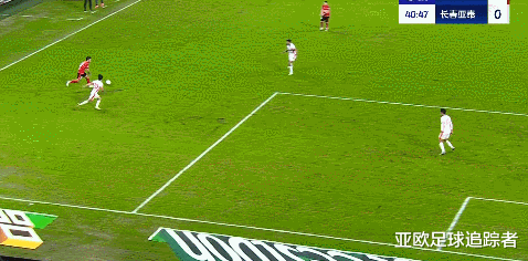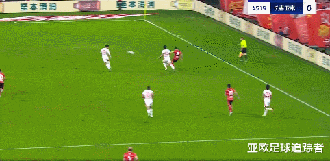 比赛第41分钟,王东升右路起球传中,周定洋跃起头球将球稍稍顶偏。