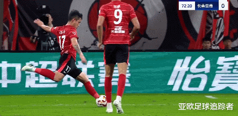 比赛第57分钟,胡荷韬接罗慕洛传中头球攻门,将球稍稍顶偏。
