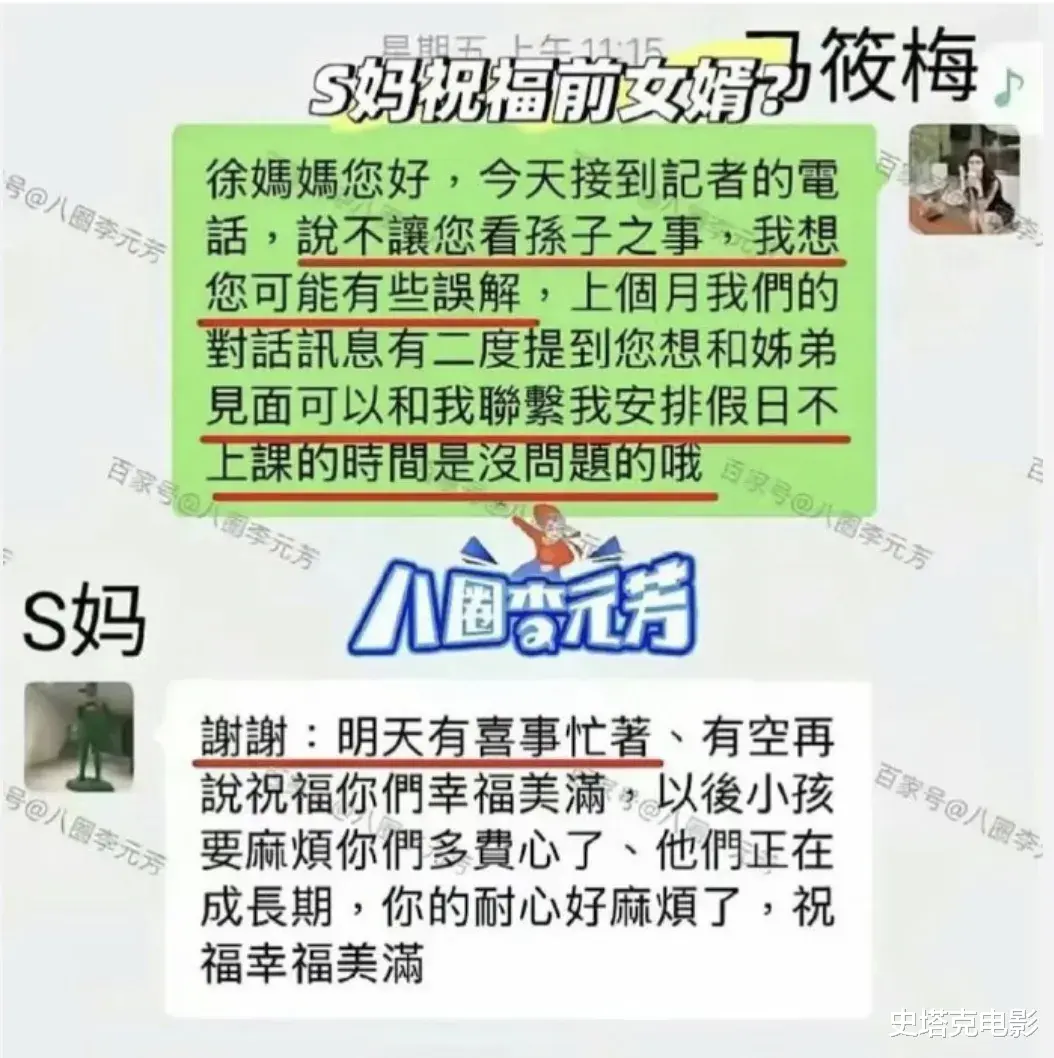 前一段时间的聊天还是很和平的,基本上都是大S妈妈感谢马筱梅照顾孩子,然后马筱梅说这是她应该做的之类的,看来还是很和气的。