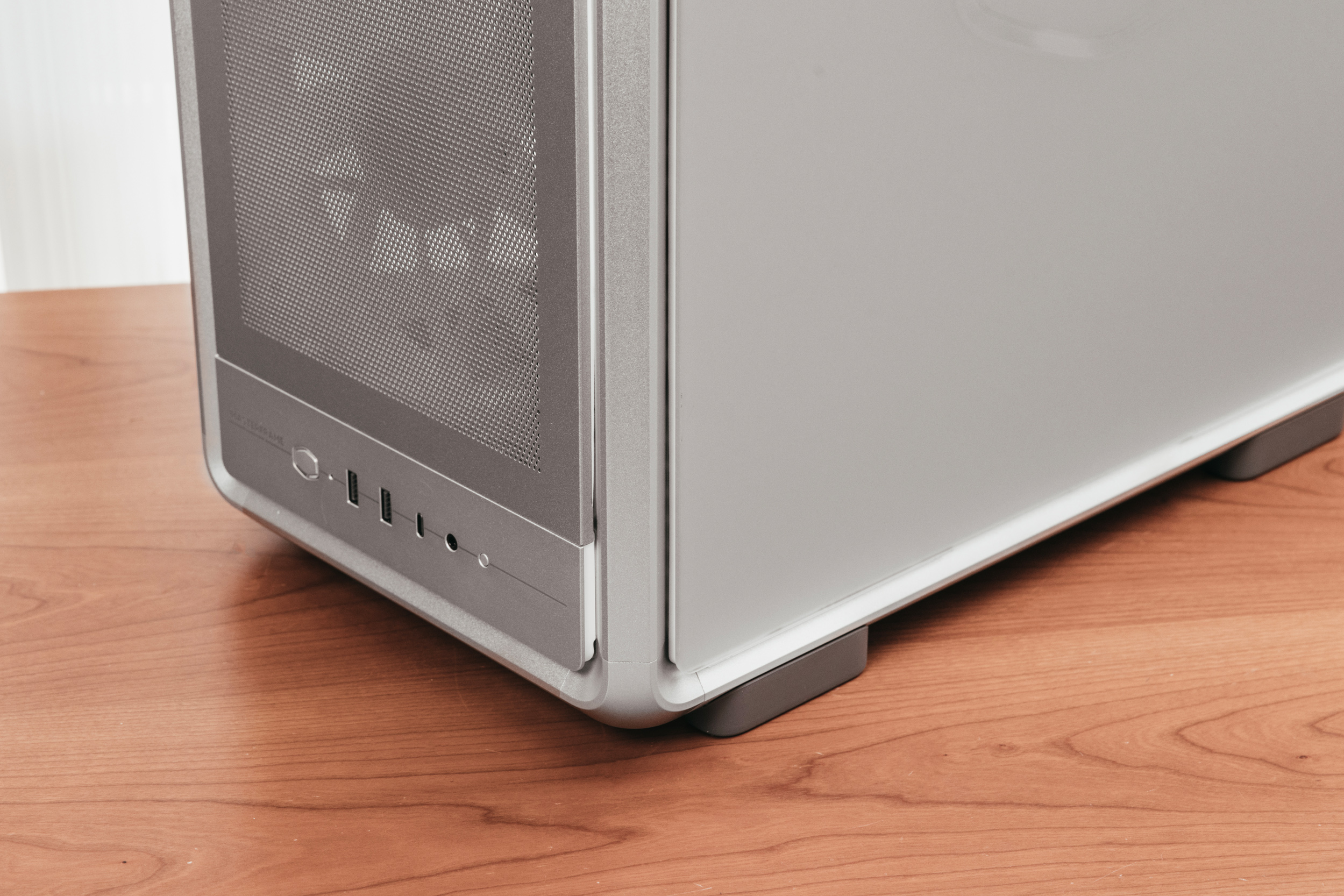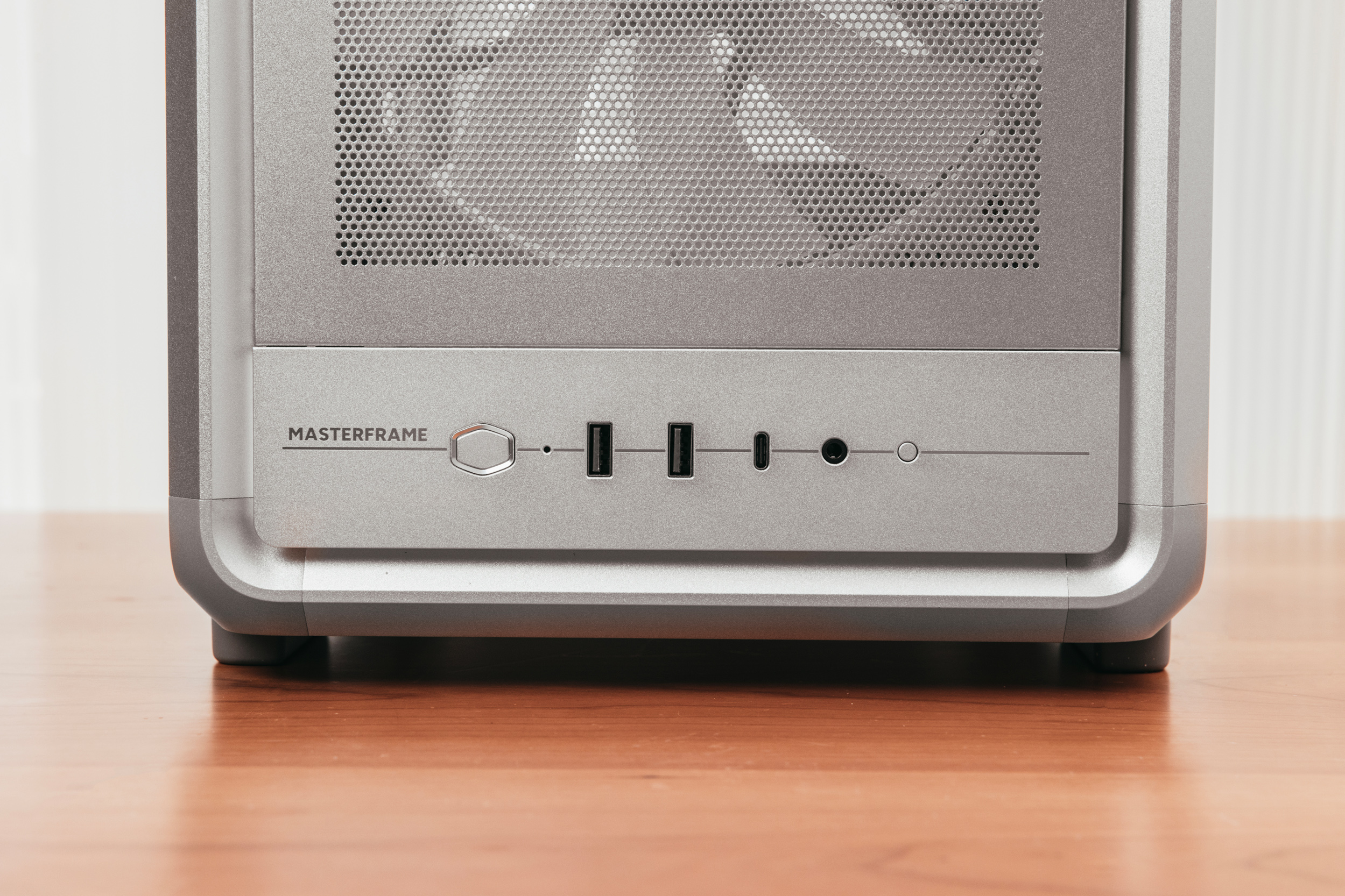 MF500 MESH框架全为铝合金材质,其他则为钢材质,整体质感优秀,电源接口和前置接口均位于底部,这是一台桌面放置的机箱。