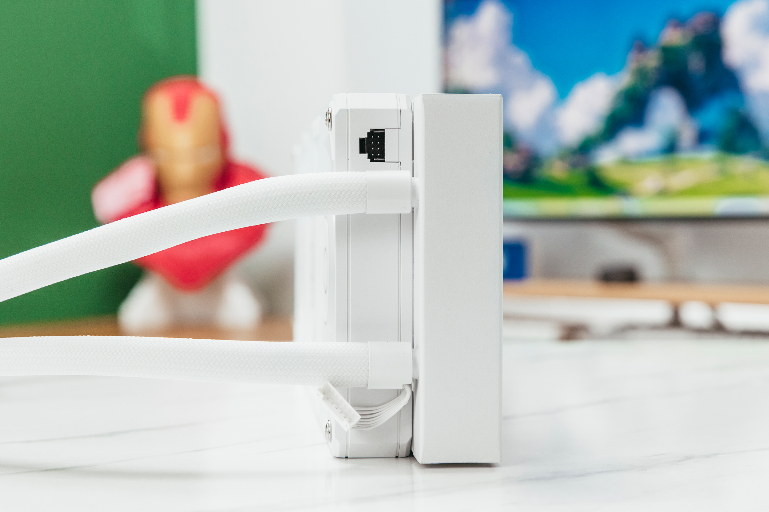 G360龙影2代除了冷头变化较大,冷排风扇均也改为了一体式,一根线材替代了之前六根线材的功能,理线整体上会更整洁。