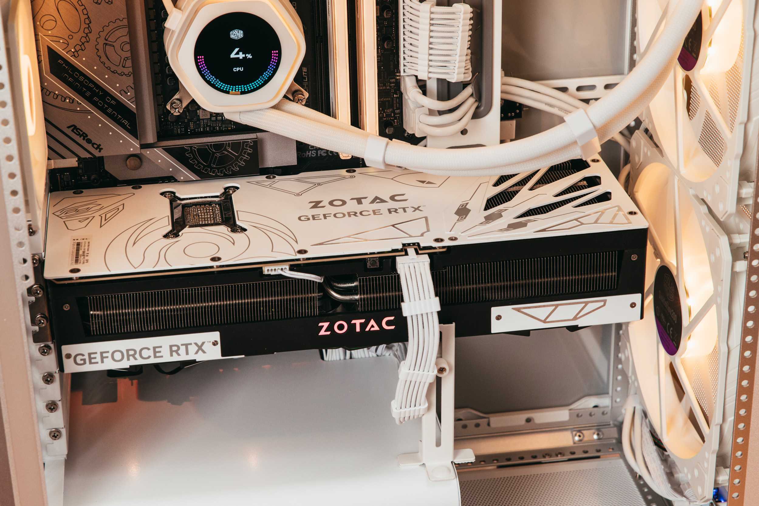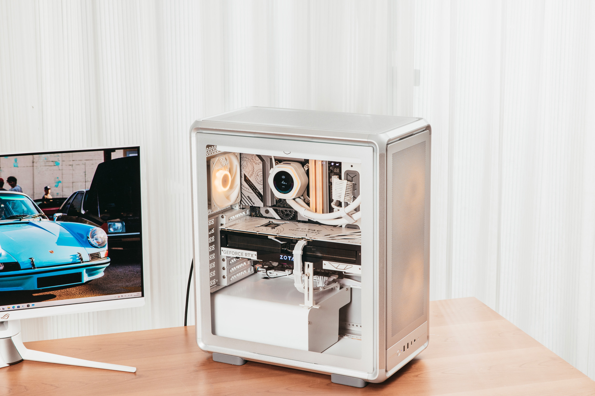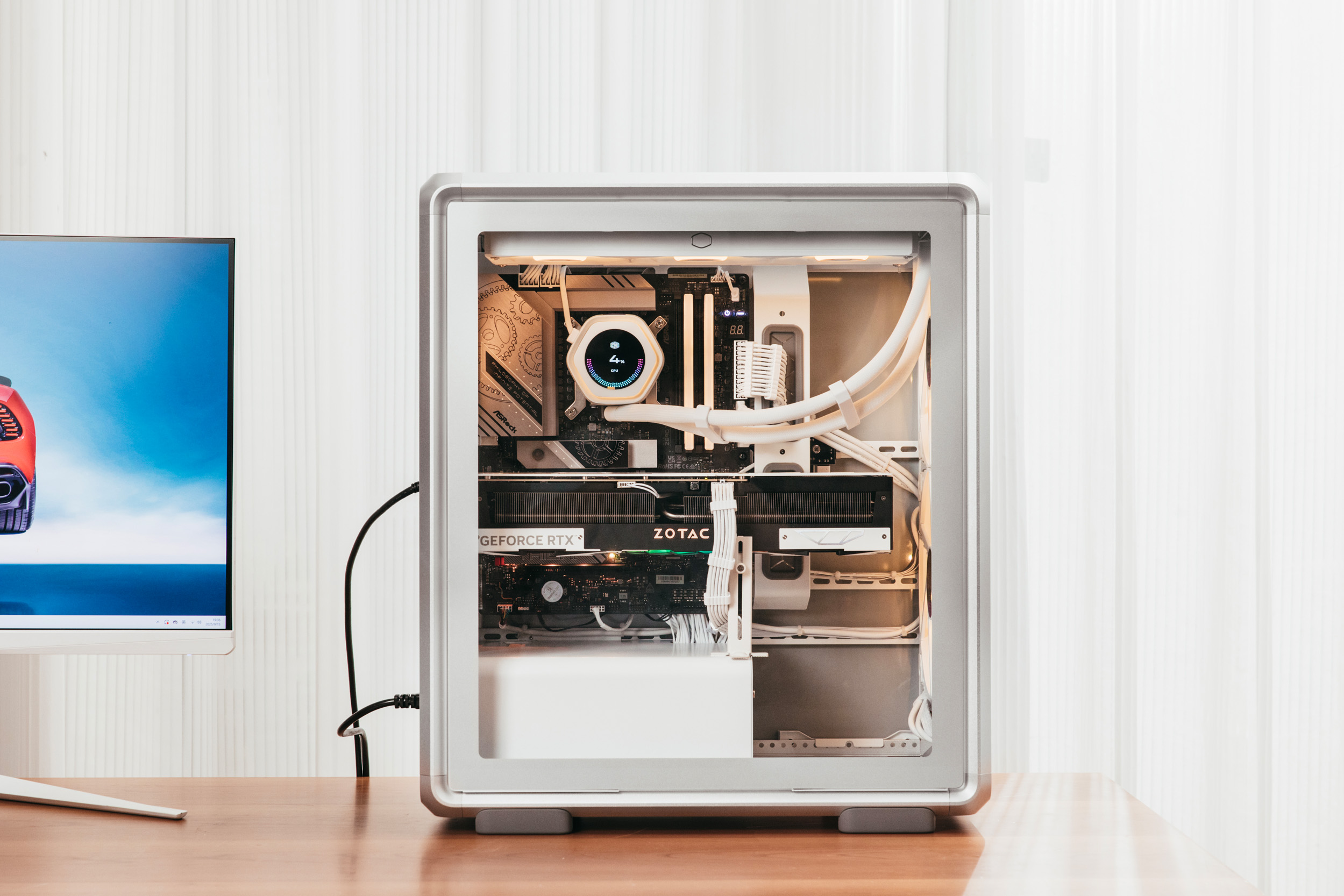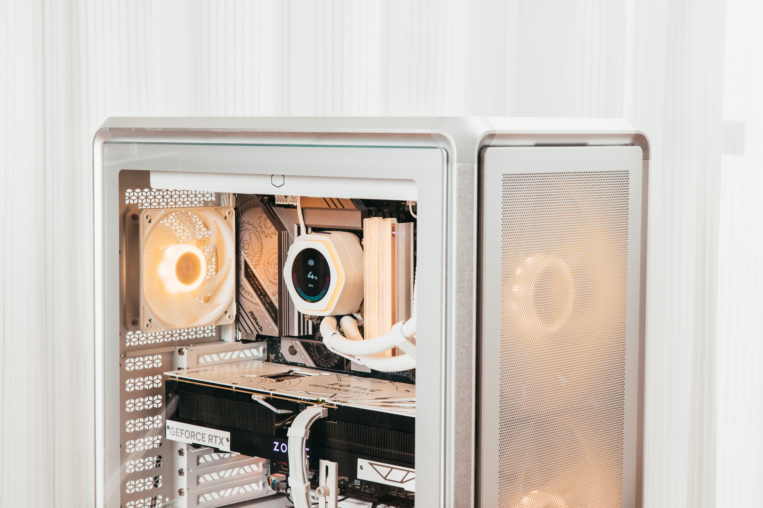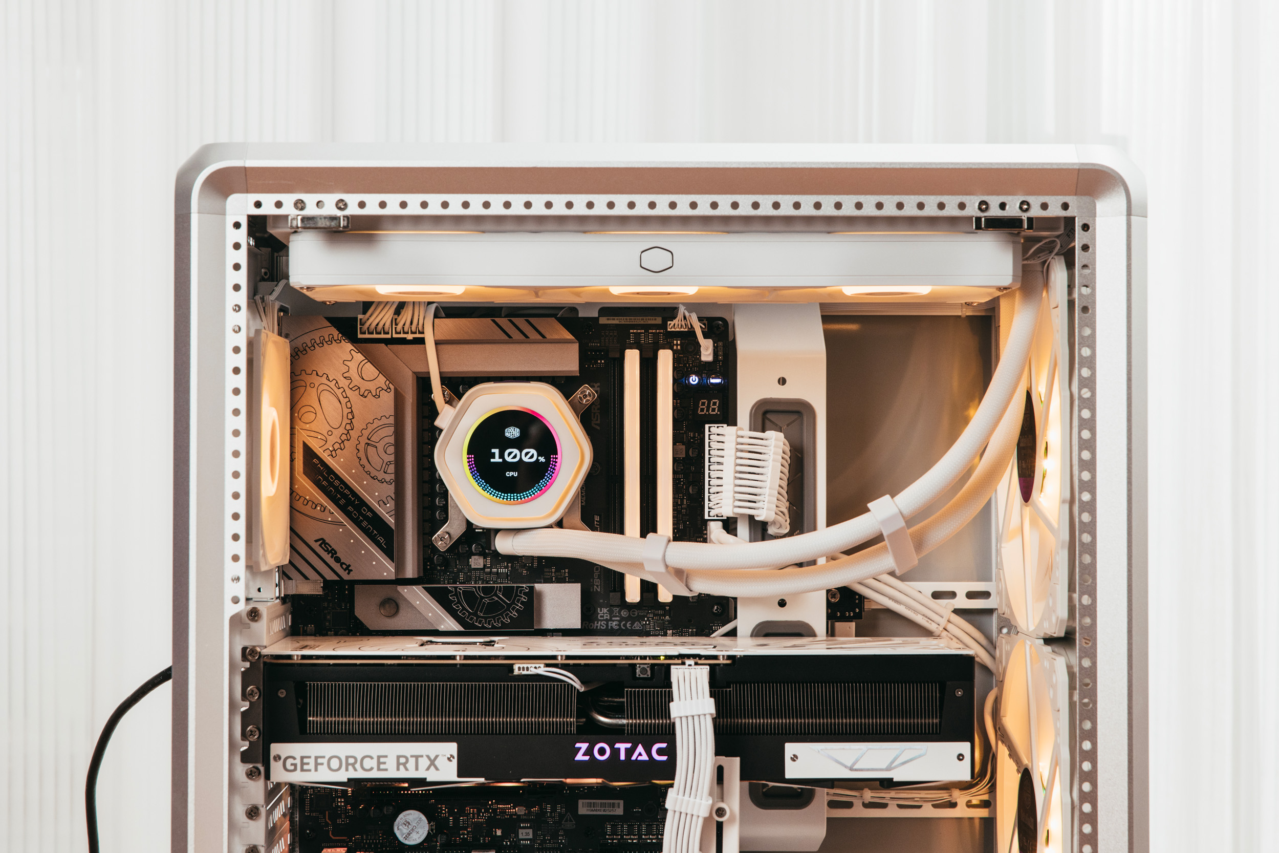机电散来自酷冷至尊全家桶,水冷为龙影2代LCD版本,电源为GX PLIUS金牌全模组1000W白色,显卡索泰RTX 5070 Ti 16GB 天启 OC,内存为光威神策DDR5 6800 M die 24G X 2 ,主板是国内没发售的华擎Z890 Tachi lite,刚好手头有这么一张主板,就直接用了。