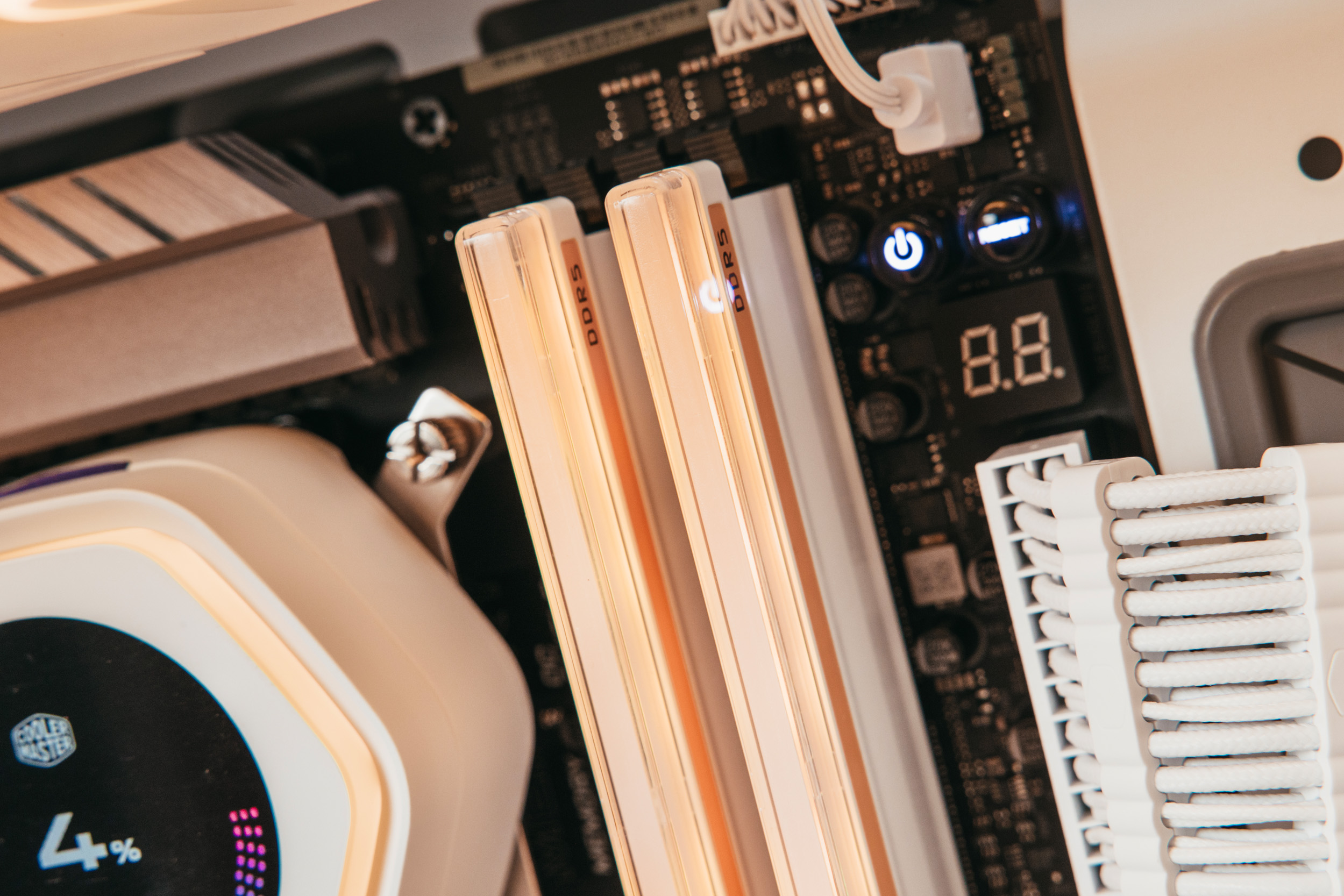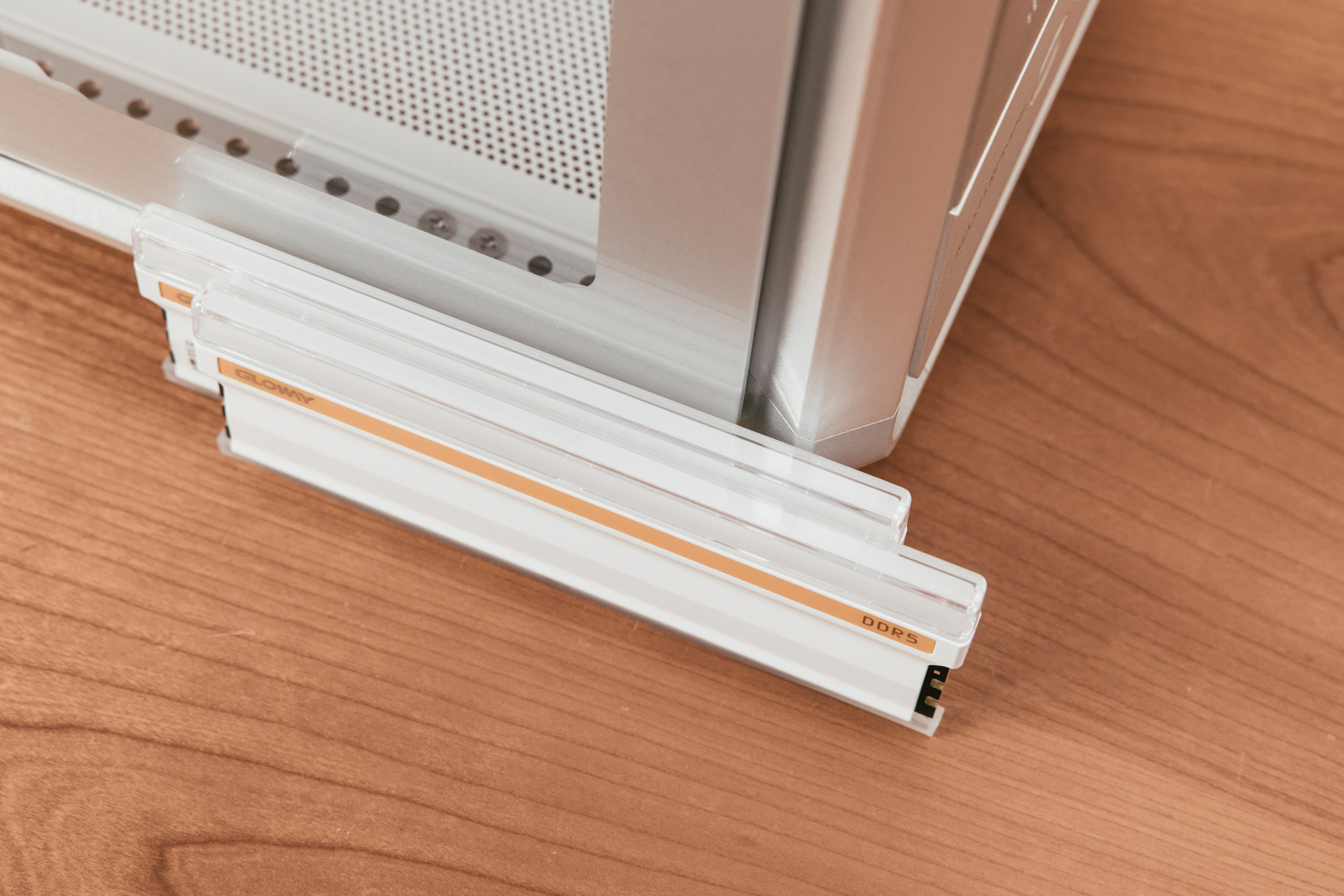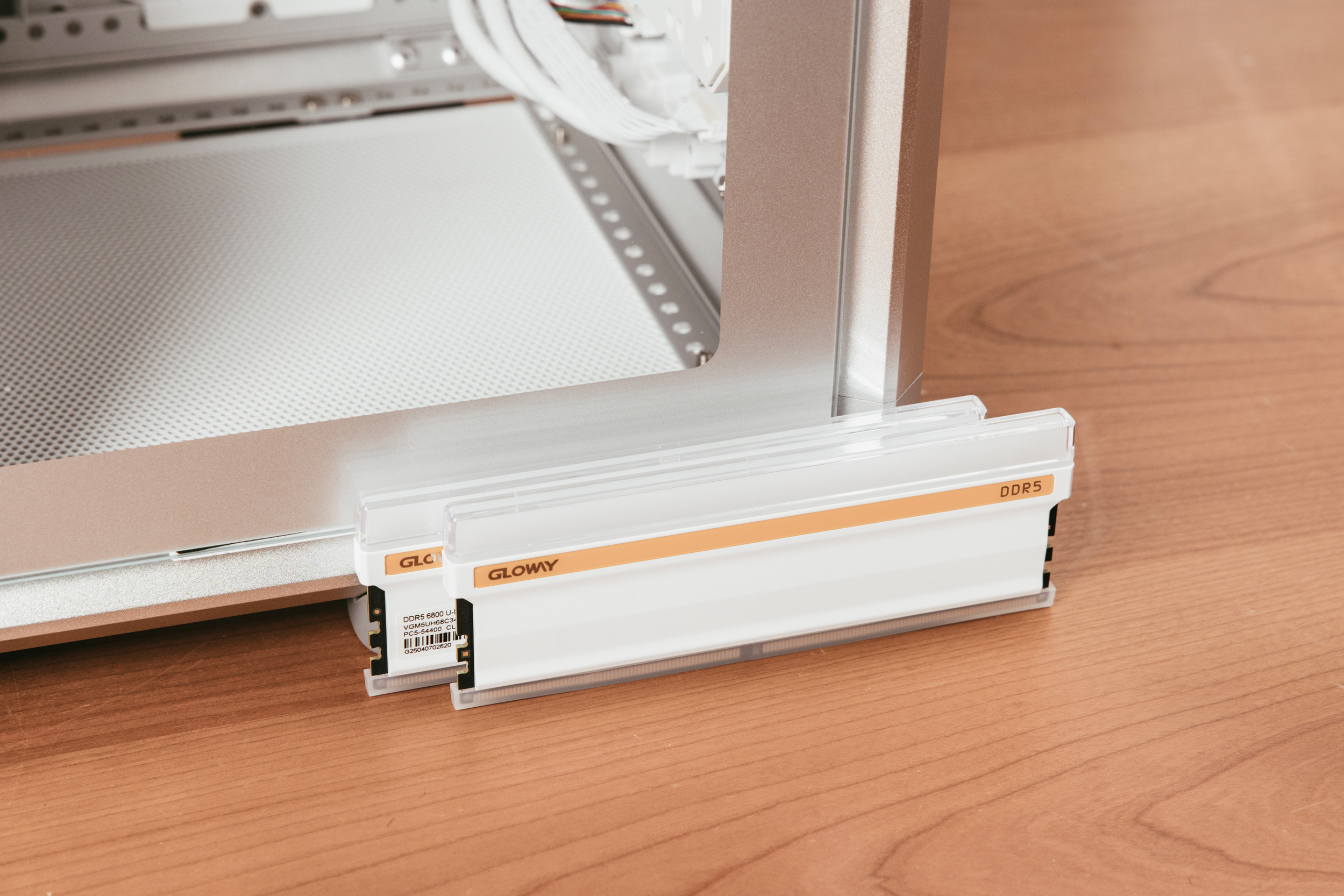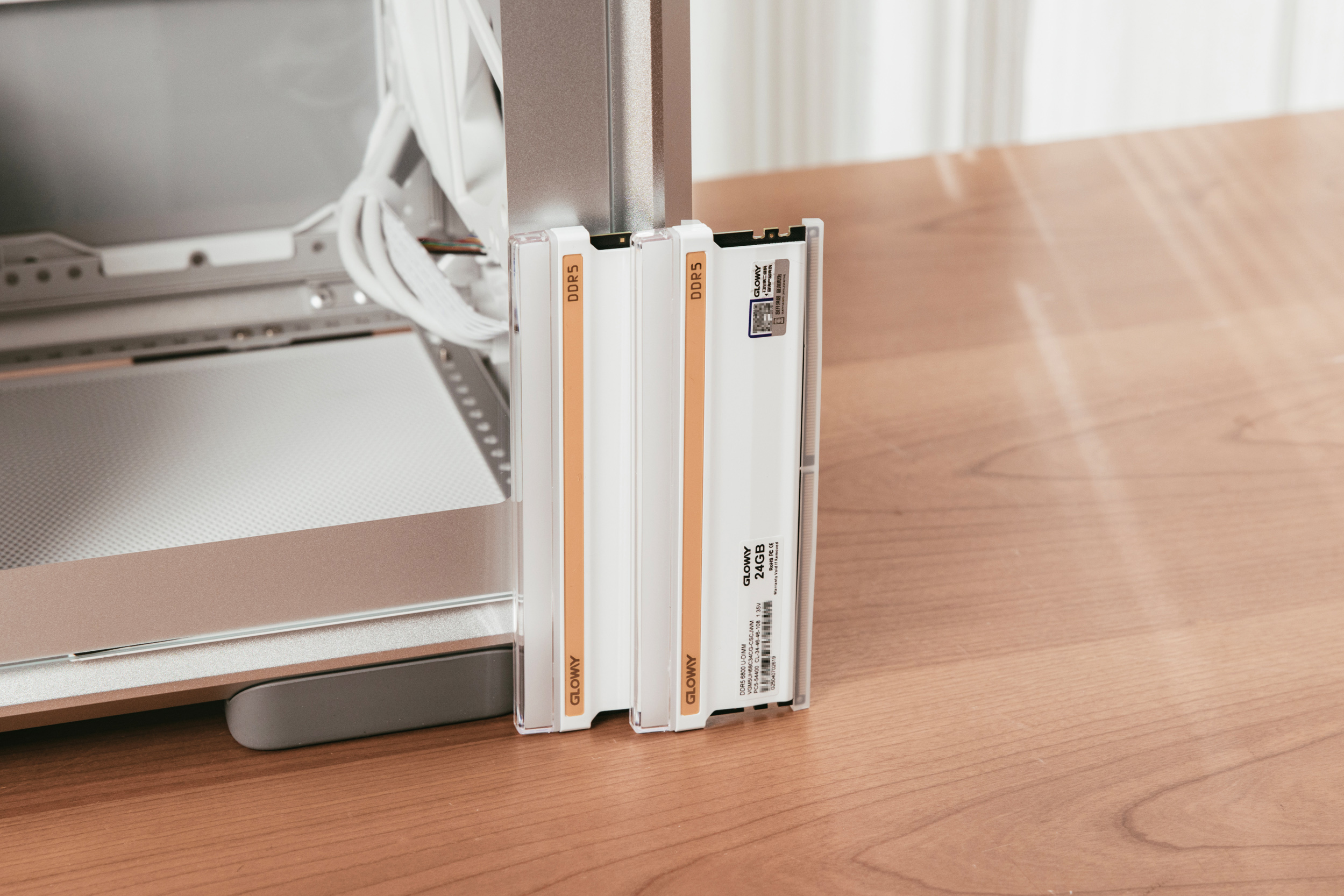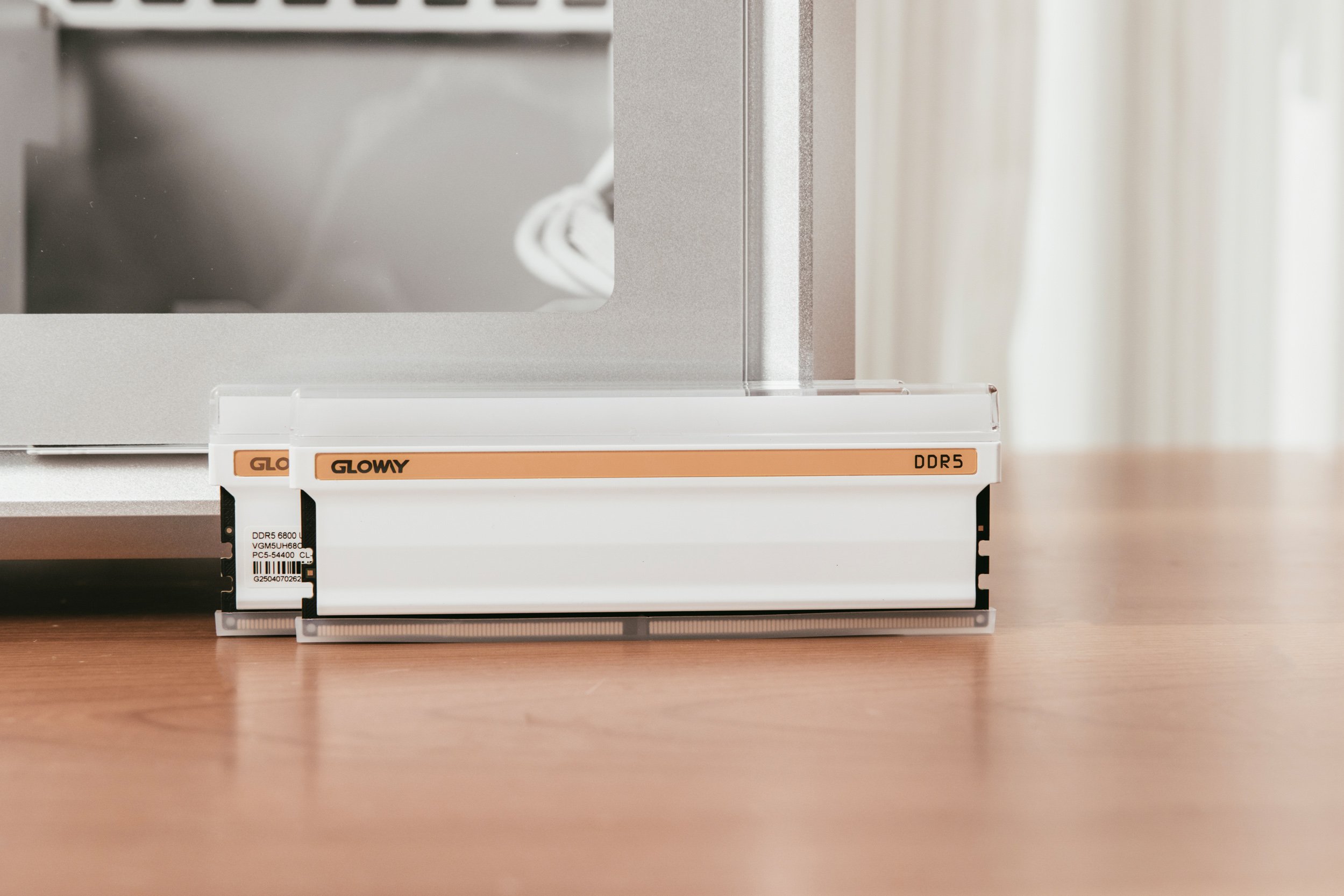 装饰条为内嵌设计,印有光威的logo和DDR5字样,个人觉得可以做一套白橙RGB灯光,会更匹配。