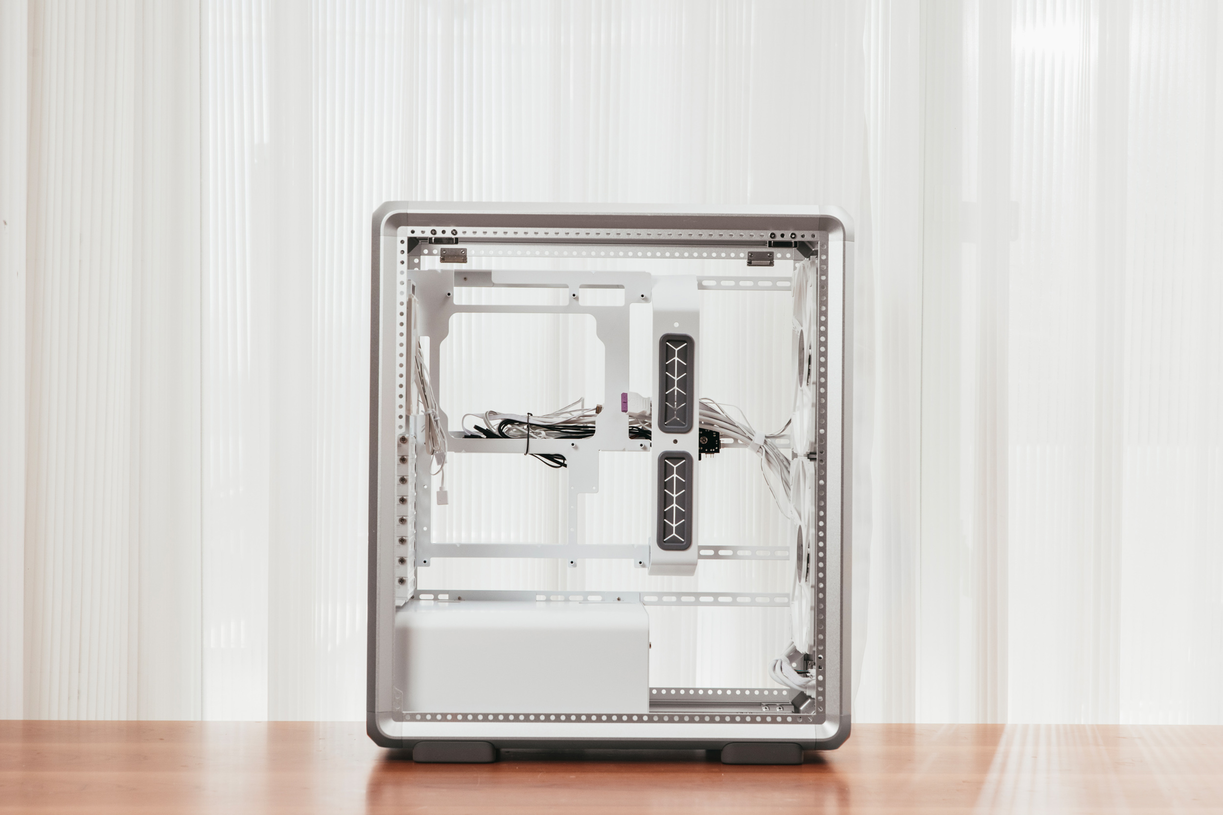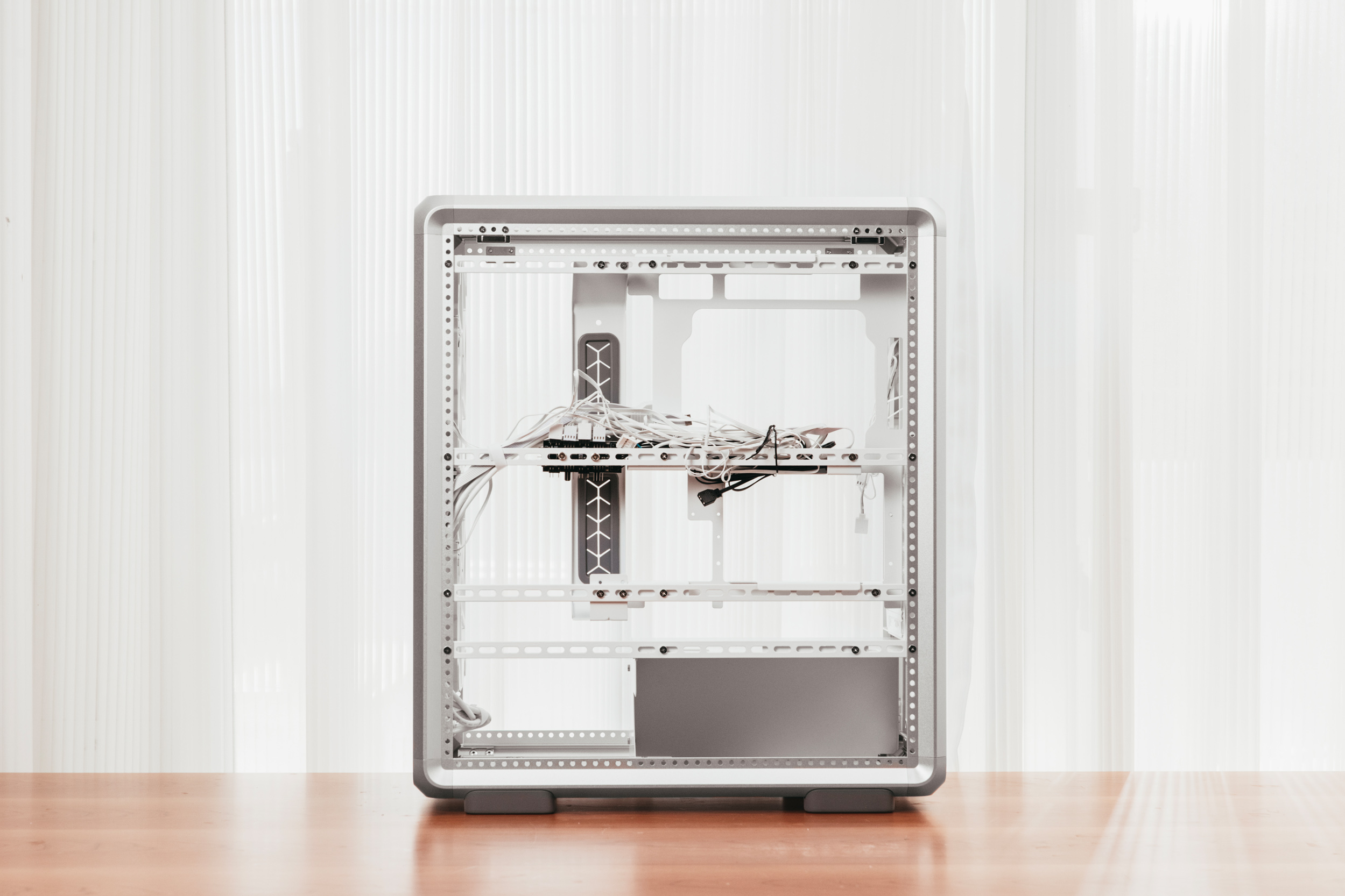 基本贯彻了自由框架的设计,框架全是可调节的孔洞,看内部结构设计是支持背插主板的,但是主页上没提。
