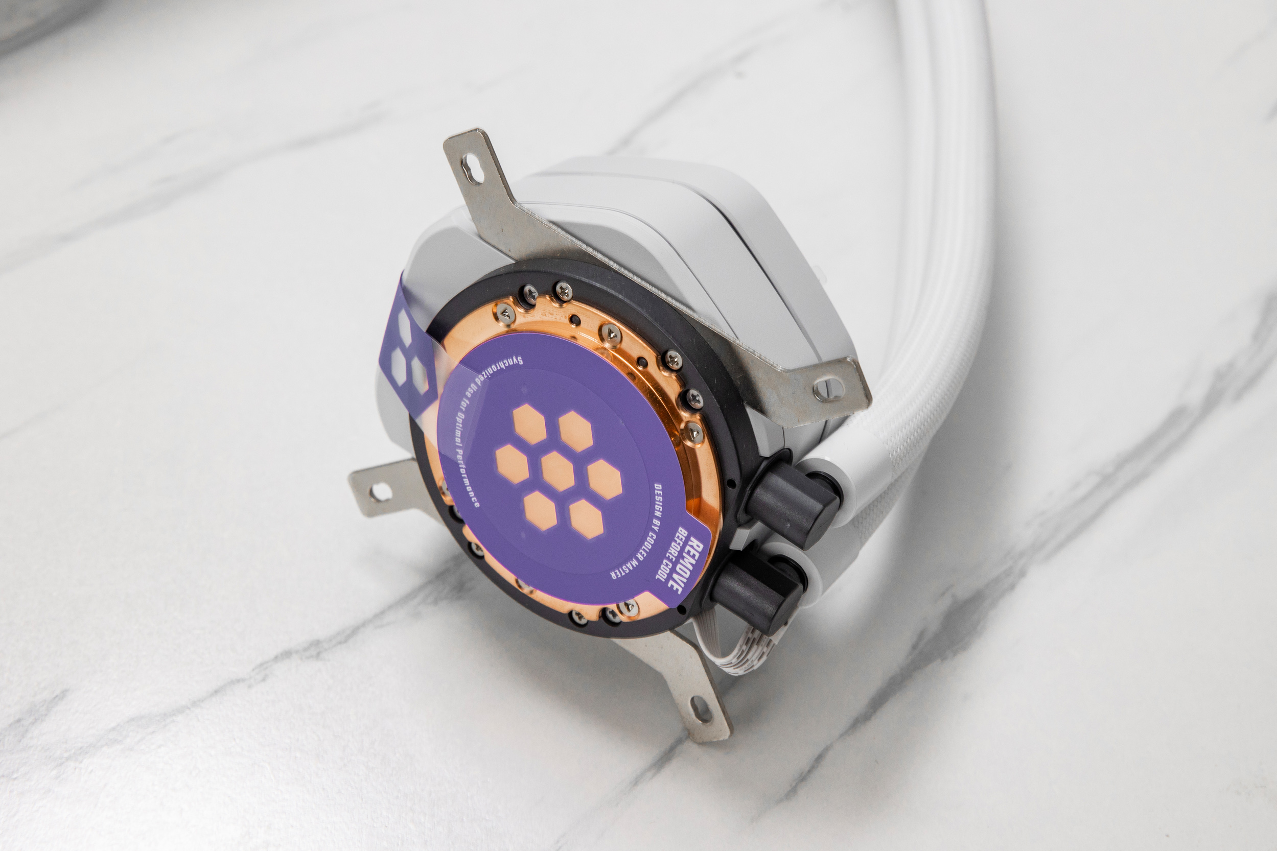 冷头模块厚度大幅减少,这也是和一代的差异点,同时还对冷头做了内部的升级,包括优化双腔体结构、设计了全新的水道,提高了铜底水道散热效率。