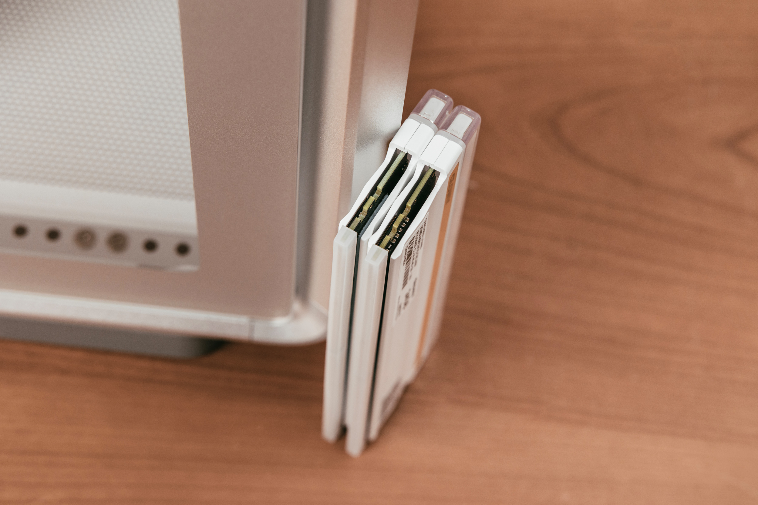 侧板的质感也非常优秀,磨砂玻璃搭配金属材质,比起单纯的金属侧板要好看很多,触感也很优秀。
