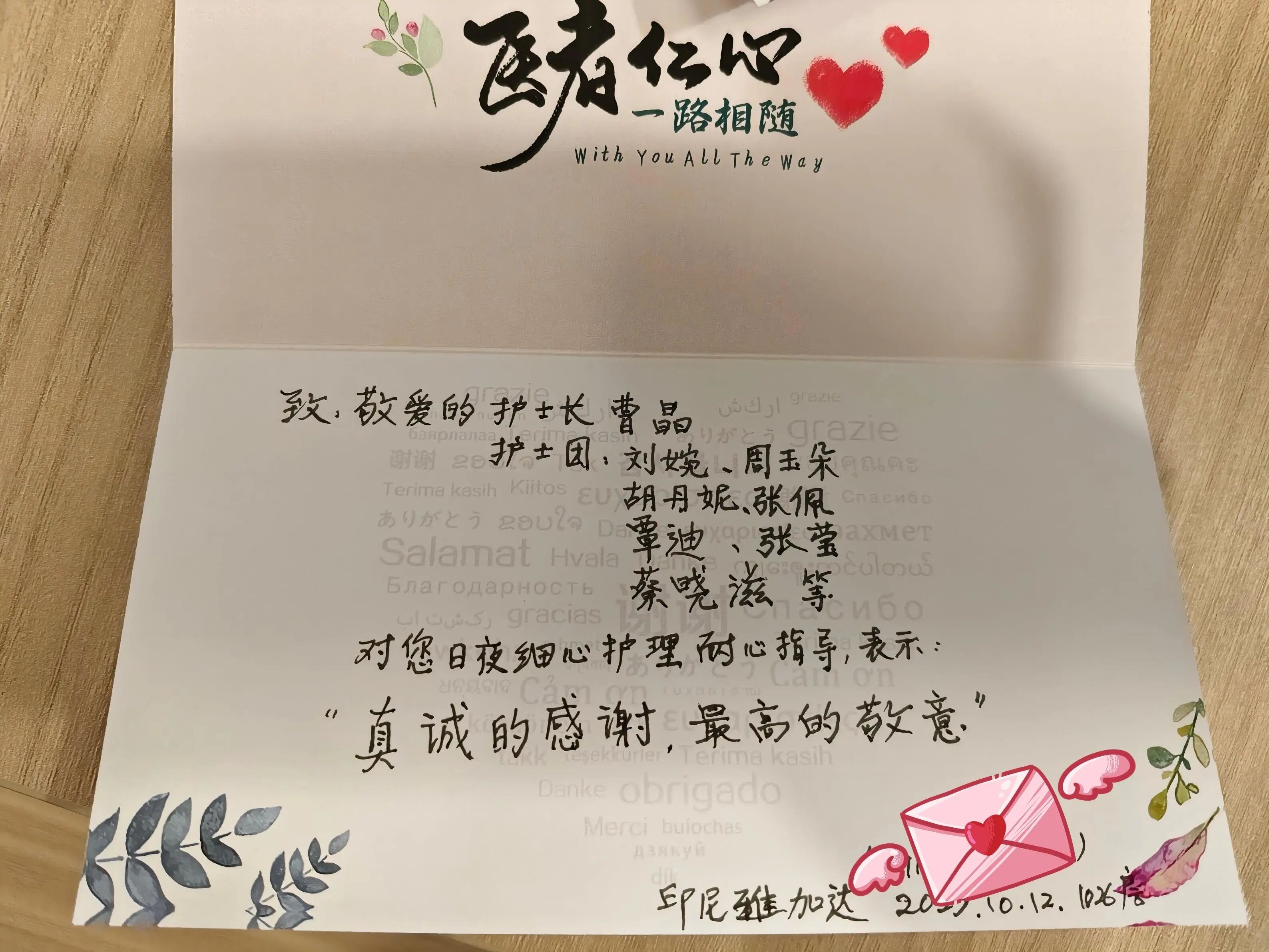 在此期间,从会诊团队的专业诊疗、麻醉师的细致配合,到翻译人员的耐心沟通、护理团队的温暖照护,都让患者和家属感受到跨越了语言与文化,源于医者仁心的关怀与支持。