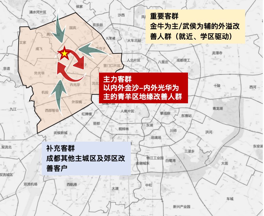 外金沙还与金牛关系密切。部分金牛高端客群向外金沙迁移的核心逻辑在于:不脱离原来的生活圈子,还能兼顾资源等方面的进阶。以教育为例,外金沙的成都市实验小学(尚雅校区)、成都市泡桐树中学百仁分校等教育资源,均为城市TOP级。