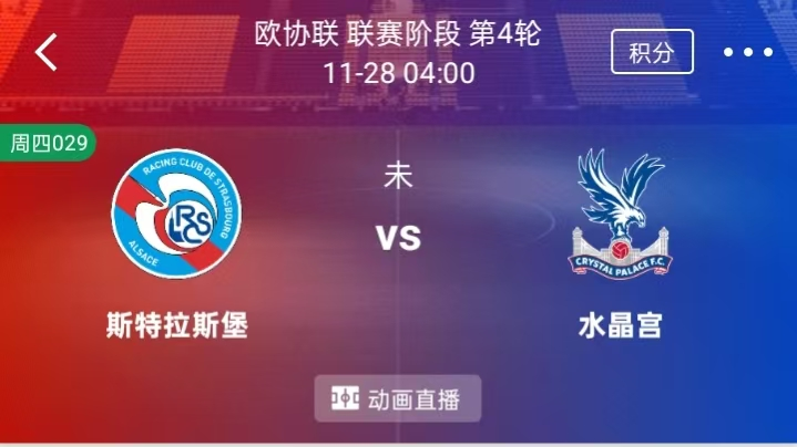 周四 029 欧协联 斯特拉斯 VS 水晶宫