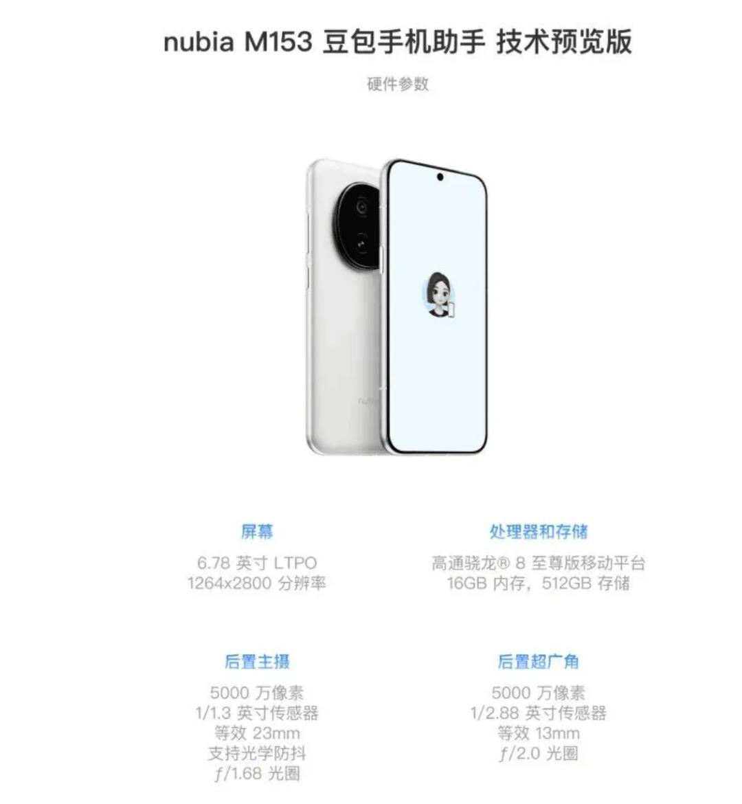 近日,由字节跳动和中兴通讯共同开发的AI手机nubia M153工程样机正式问世并同步面向开发者发售。
