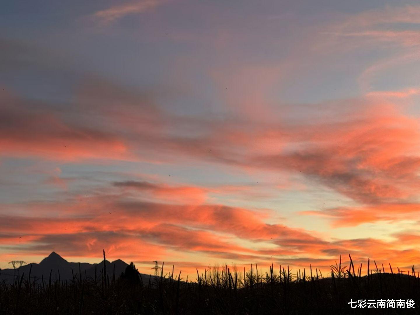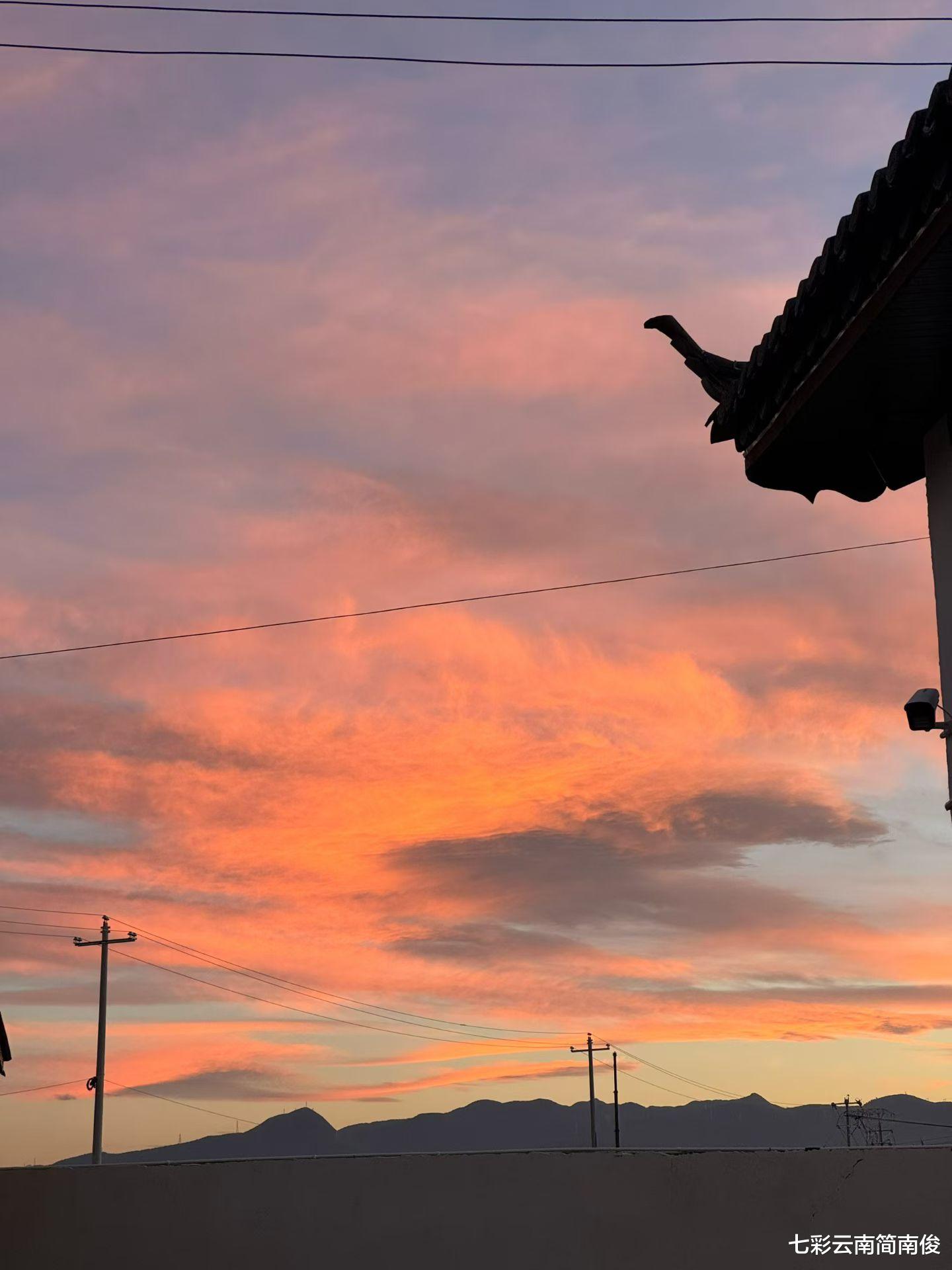 经观察获悉,11月9日18时许,云南省丽江市天际浮现晚霞美景,美如中国风水墨丹青画卷。在云南省丽江市经营民宿客栈的网友“娜小娜”目睹晚霞彩云,欣赏拍摄,记录下唯美视觉盛宴。仰望云天,天际彩云晚霞高悬,一幅幅瑰丽自然美景,拨动心弦,目睹此情此景,令人心旷神怡,流连忘返。据悉,云南素有“七彩云南”之雅称,“彩云之南”之美誉,每到秋末初冬,各式各样的魅力云景闪现云岭大地,为彩云之南增添无限自然人文魅力。云南,位于祖国西南端,因“云”而闻名遐迩,堪称“诗的远方,云的故乡”,是五湖四海、大江南北旅客心中的“绝佳旅游打卡地”。云南云景万千,美景无限,当属七彩祥云最令人魂牵梦绕,每当七彩祥云出现之时,七彩云南壮丽河山画卷,如痴如醉,如梦如幻,催人赞叹“逐梦前行赏河山风情走遍中华神州万水千山,举目赏云感神秘梦幻醉美诗意远方彩云之南”。