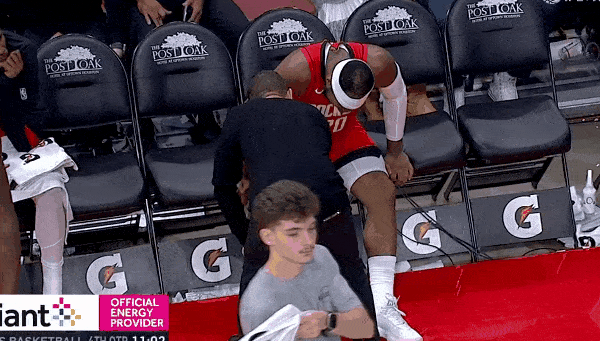 奥科吉突破上篮与加福德对撞膝盖受伤,目前已下场治疗