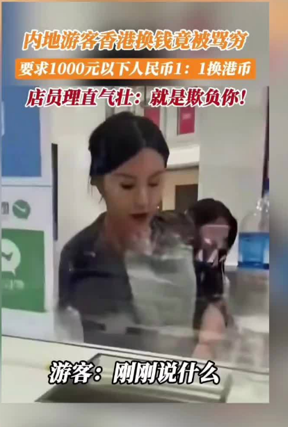 "500块人民币只能1:1换港币!"柜台后的店员冷冷地说。这让游客顿时愣在原地——要知道,当前市场汇率可是1元人民币兑换1.0951港币啊!面对游客的质疑,店员不但没有解释,反而甩出一句令人大跌眼镜的话:"你就是穷!穷就不要嫌弃1:1的汇率!"
