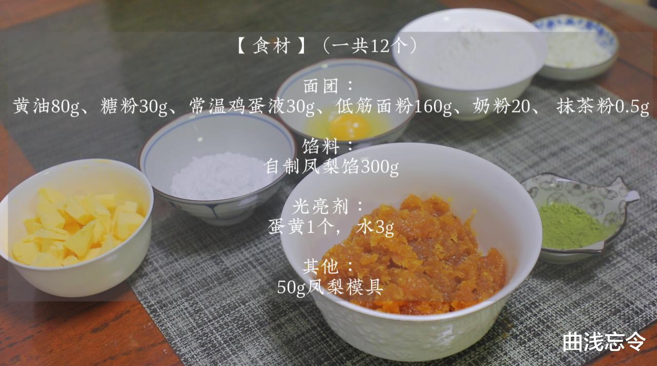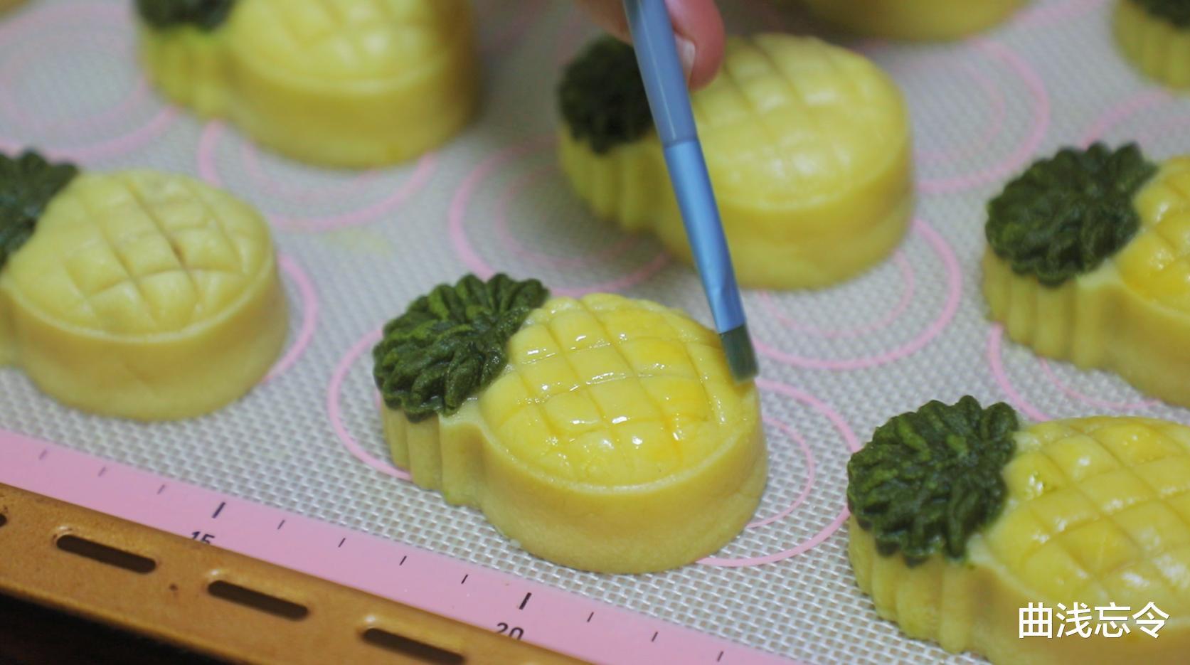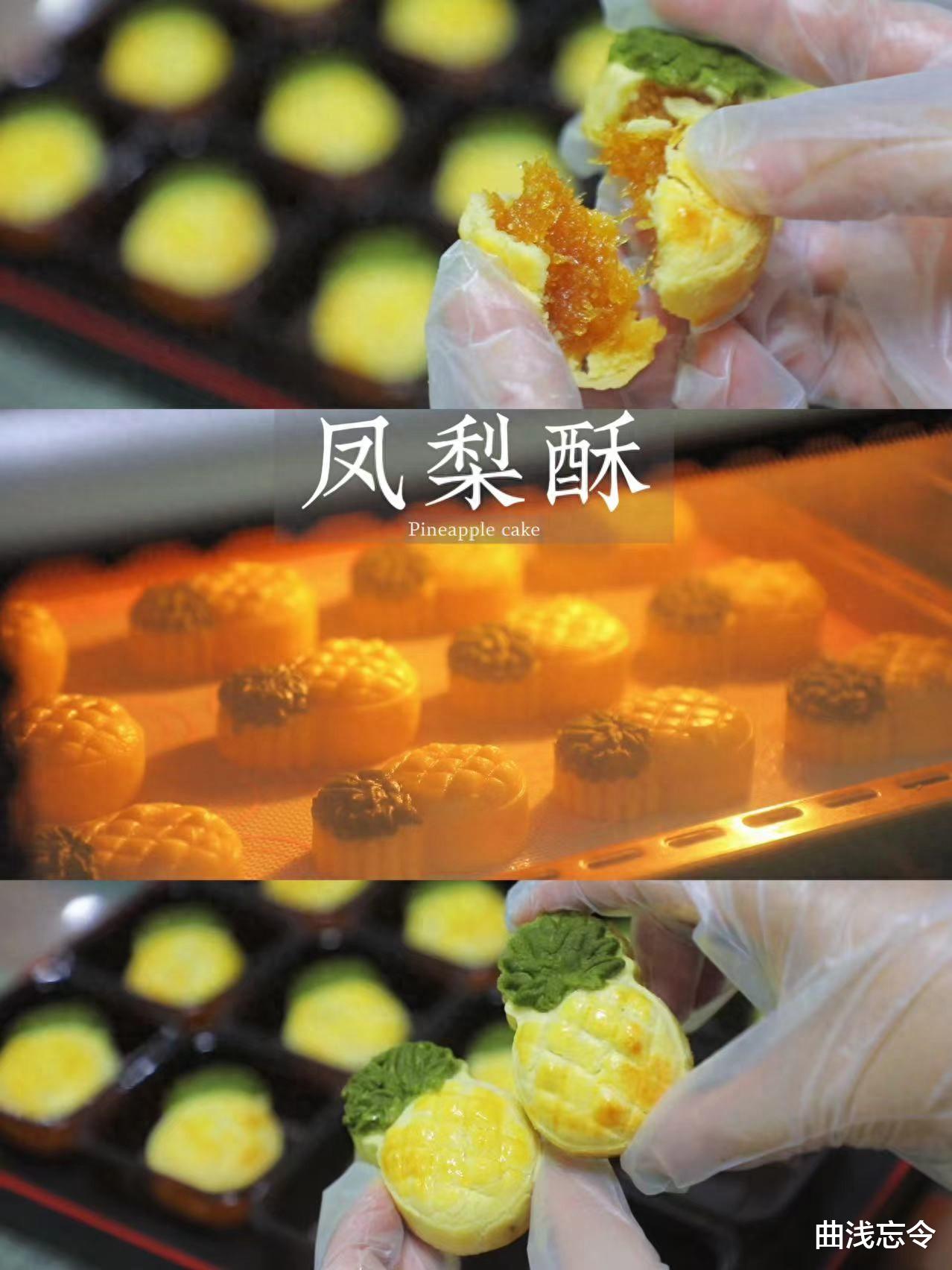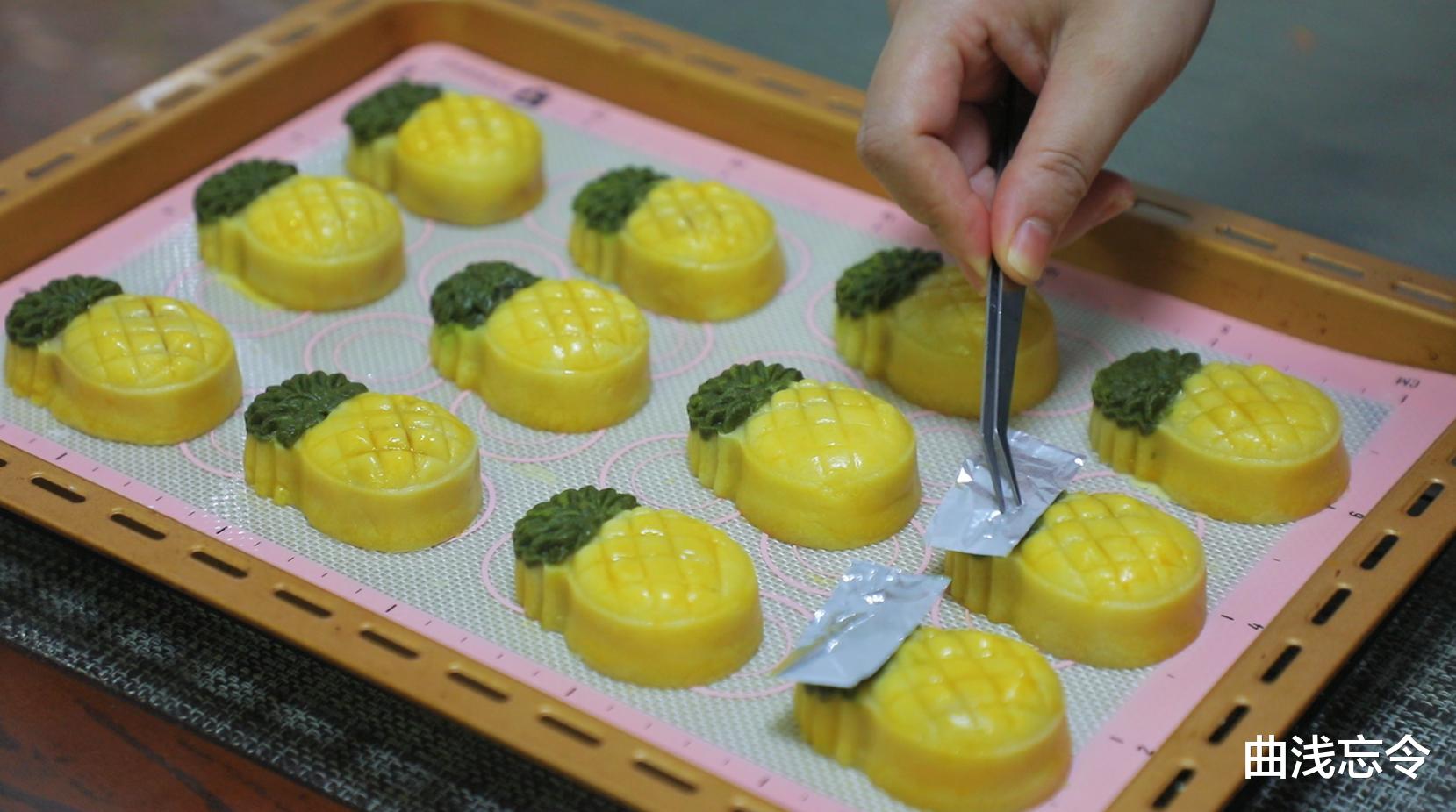 凤梨馅可以直接买现成的,当然推荐是自己做。外皮部分的材料不多,主要是操作过程中打发要到位,要注意黄油和鸡蛋的温度,避免水油分离。压膜时要注意一些小细节,避免不好脱模。烤制时要随时观察,确保达到理想的颜色和状态。