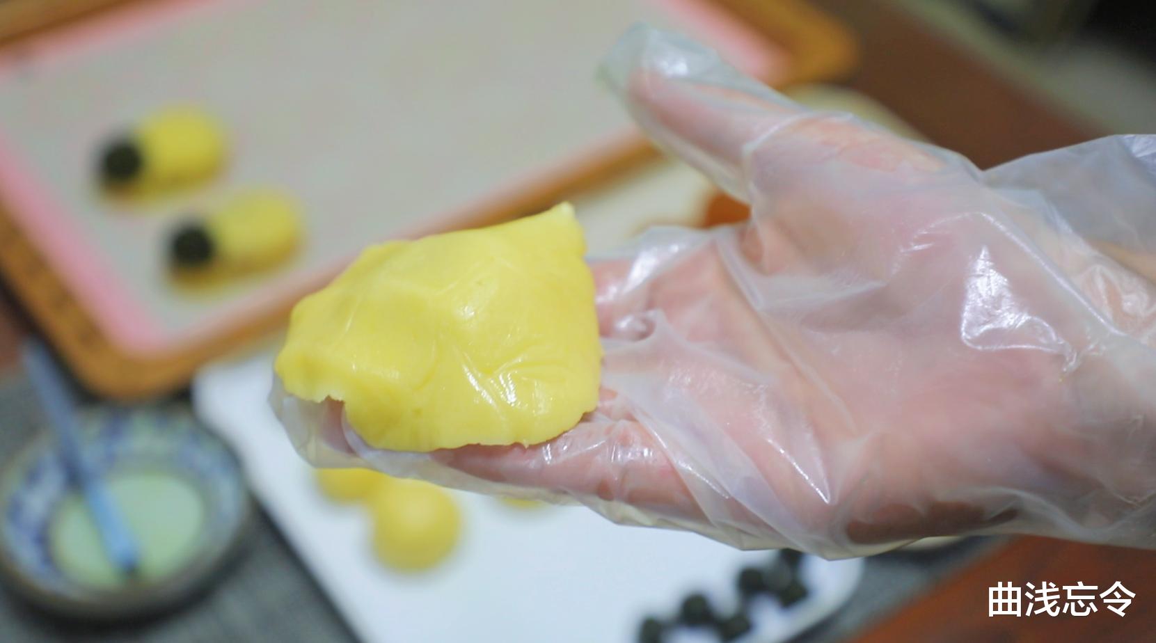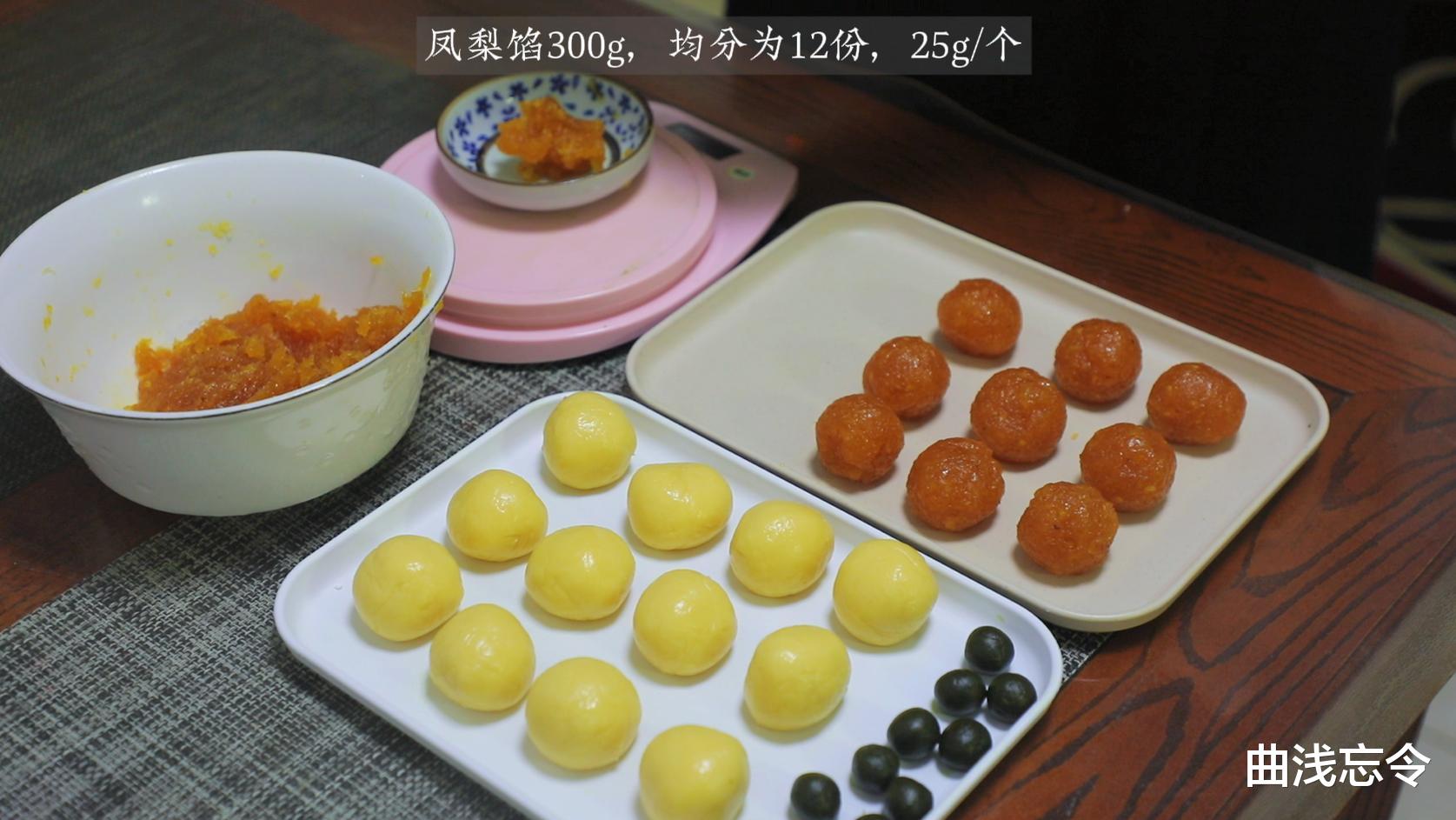 6、凤梨馅料也分为25g/个,揉圆备用。如果想更有型则可以先冷藏30分钟左右再包。