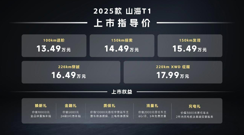 为助力用户轻松邂逅2025款捷途山海T1的独特魅力,捷途汽车还同步推出了诚意满满的购车权益,下订即可享受“购车5重礼”: