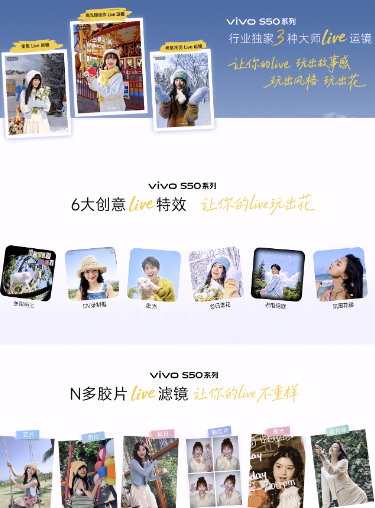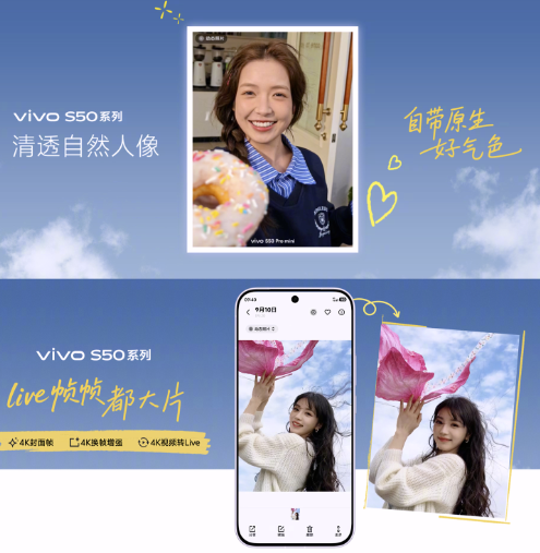翻开vivo S50的影像相册,每一张Live照片都在讲述着会呼吸的故事,将静态摄影与动态影像的齐包揽。想拍主角感、想拍故事感、想拍氛围感,所有关于Live的灵感想象,S50一次性全部满足,得益于索尼大底潜望长焦主摄级索尼IMX882超感光传感器,5000万索尼LYT-700V大底传感器超防抖大底主摄,vivo S50的影像能力再次刷新行业高度。