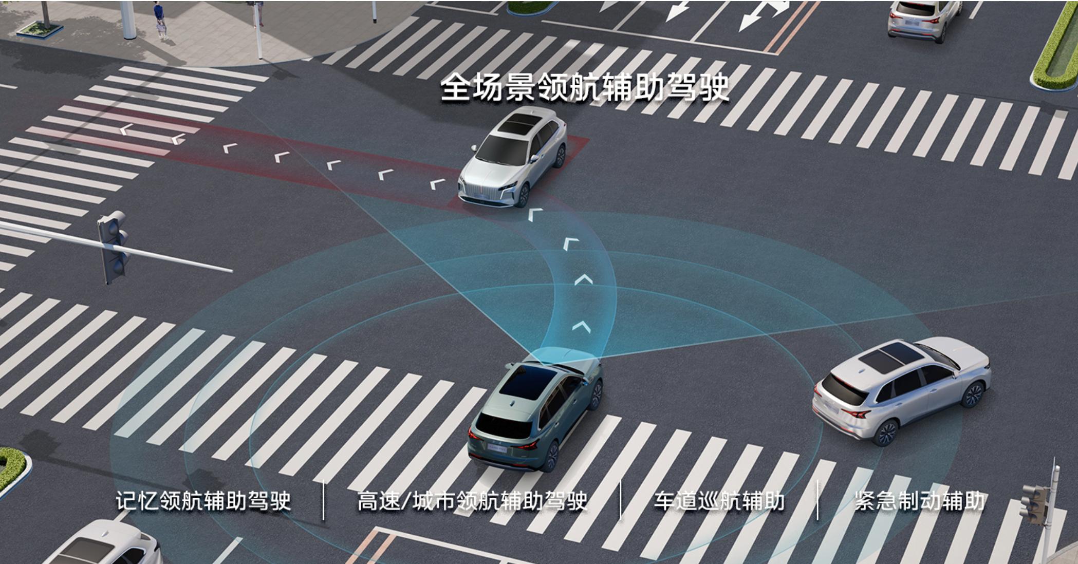 在驾驶辅助方面,红旗这套“司南”系统的逻辑很务实,聚焦的是高频刚需场景。硬件配置挺扎实,10个摄像头、12个超声波雷达和1个毫米波雷达 。功能上,全速自适应巡航、车道居中保持、主动刹车这些都是标配。体验下来,高速巡航时跟车距离控制得比较自然,遇到大曲率弯道,方向修正也很线性,不会有那种“画龙”的感觉 。