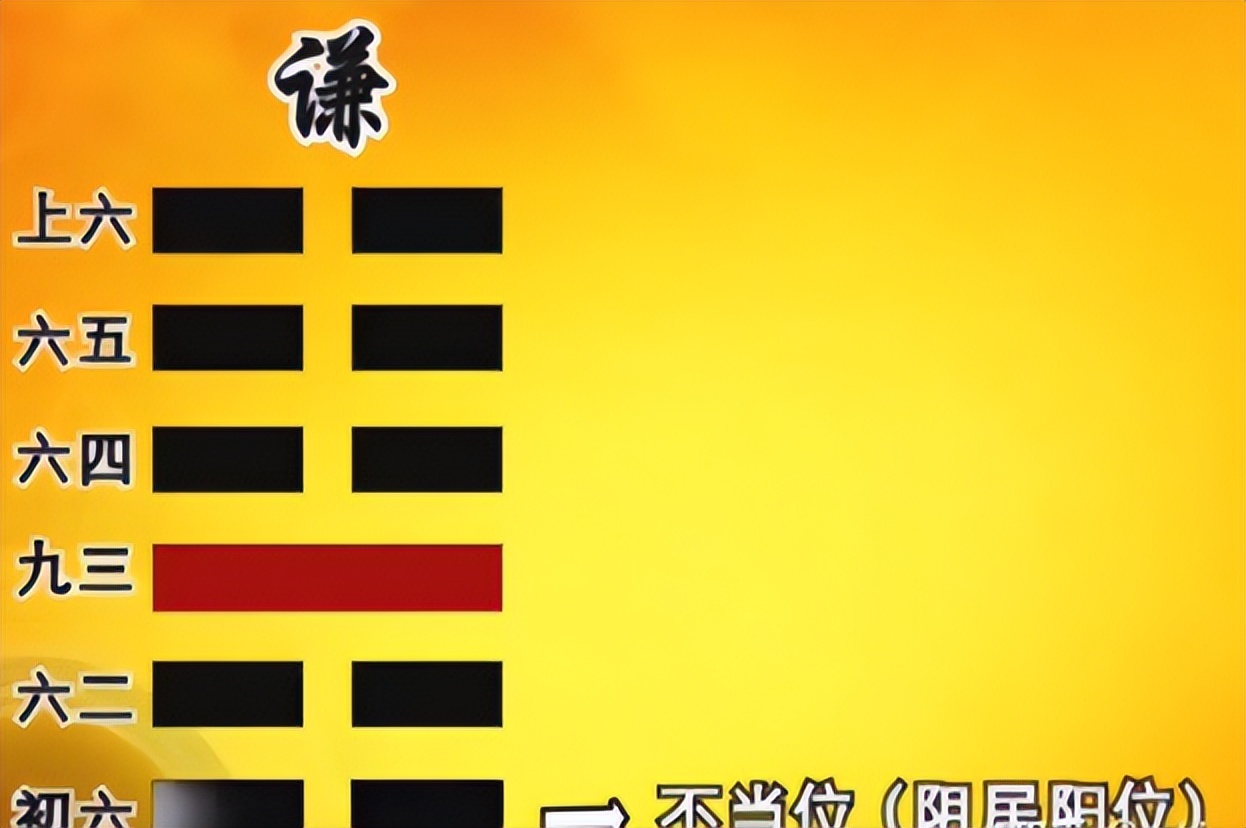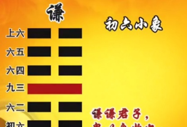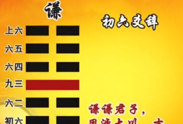 我们看一个卦要从初爻看起,因为最底下是基础。谦卦初爻为什么不用初九而用初六,因为它是阴爻,但是占的是阳爻的位置。