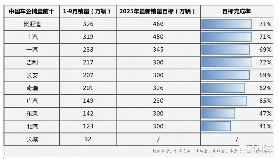 在此背景下,2025年1-9月各车企披露的销量目标完成率,早已不是简单的数字达标与否的单一评判,实则是一场围绕技术能否快速转化为用户体验、认知能否精准匹配消费需求、战略能否适配市场节奏的综合大考。而若想真正读懂当前车市的竞争态势,仅看“完成率”表层数据远远不够——透过这组数据挖掘其背后的市场趋势迁移、竞争格局重塑与用户需求升级,这份深度市场分析,才更显其战略参考价值与意味深长的行业启示。