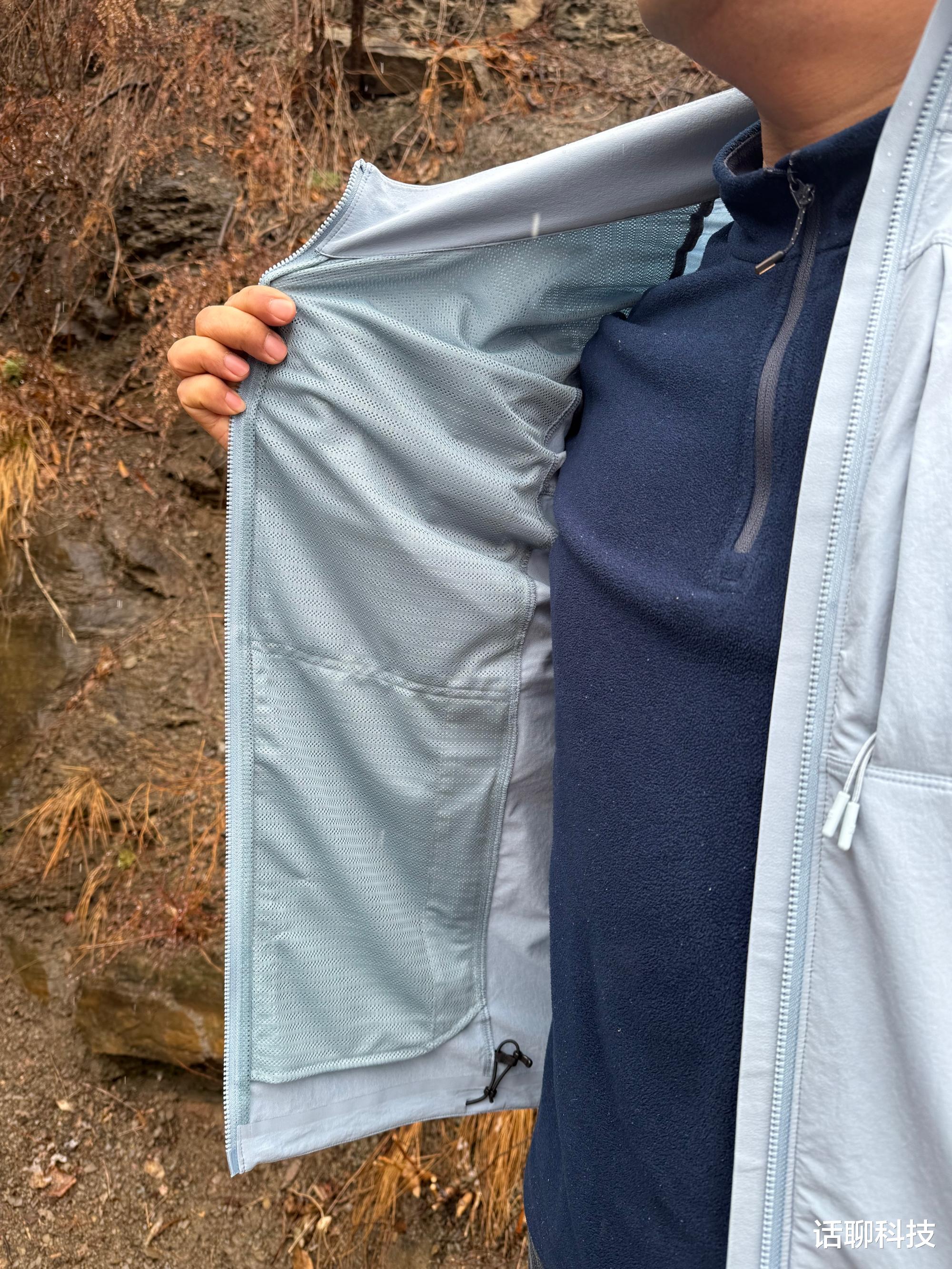 至于口袋里料,是透气网布设计,不仅不用担心口袋角上藏污纳垢、有泥沙杂物的问题,而且透气性极好,不影响衣服总体功能性。