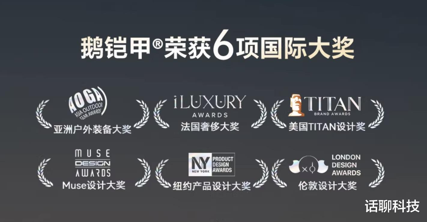 天石户外是源头工厂,1994年成立以来,曾作为中国户外服饰工匠,为众多国际户外品牌提供产品定制加工,鹅铠甲是其新打造的自有品牌,主要依托自家上游服饰专业面料供应链的强大优势,专门做专业户外服饰,最开始是做羽绒服、后来逐渐扩展到P棉棉服、软壳、硬壳等产品。其产品突出特点是,用料实在、定价较低,剪裁立体,穿着舒适,深受户外爱好者喜欢,也斩获不少国际大奖,包括亚洲AOGA户外装备大奖、法国iLUXURY大奖、美国TITAN设计奖、Muse设计奖、纽约产品设计奖、伦敦设计大奖,等等。