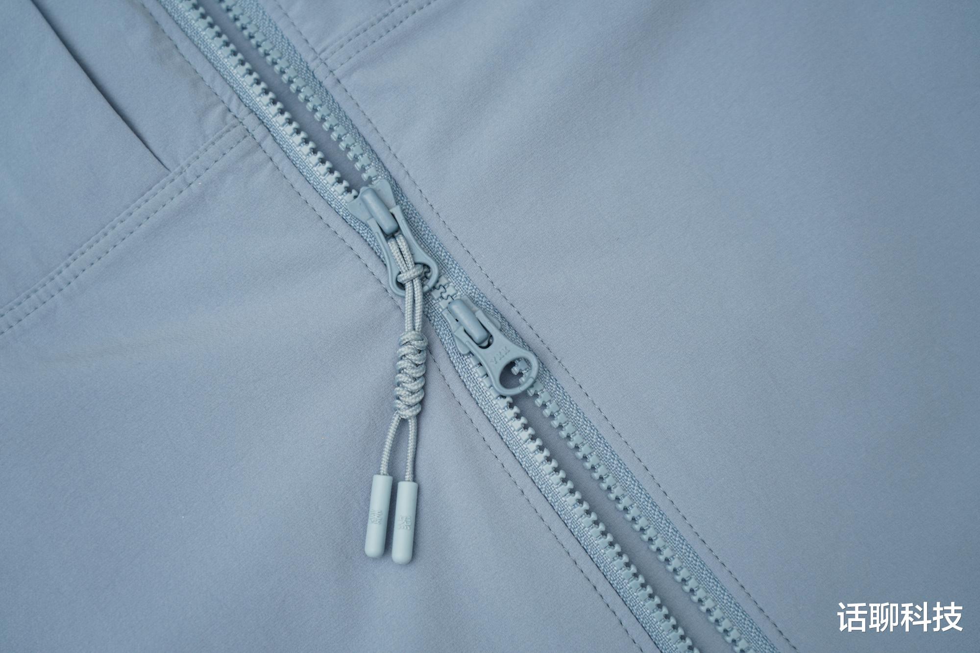 并且YKK尼龙主拉链用的也是户外服饰常见的双拉头设计,可以更好满足穿着时大幅度运动的需要。至于为什么户外服饰偏爱尼龙拉链?这个主要是尼龙拉链不惧冷热、不怕泡水生锈、长时间使用更顺滑耐磨。