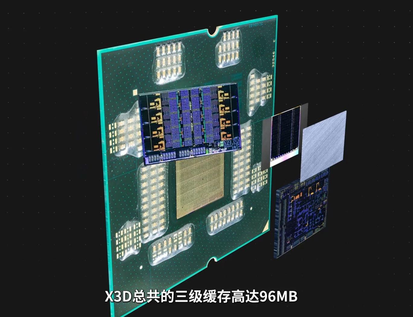 如果要说,9800X3D最牛逼的地方,那就是 它的3D缓存已进化至第二代,位置转移至处理器CCD模块下方,这使得CCD模块更贴近散热顶盖和散热器,从而大幅提升散热效率,这也是其能够达到更高频率的关键因素。