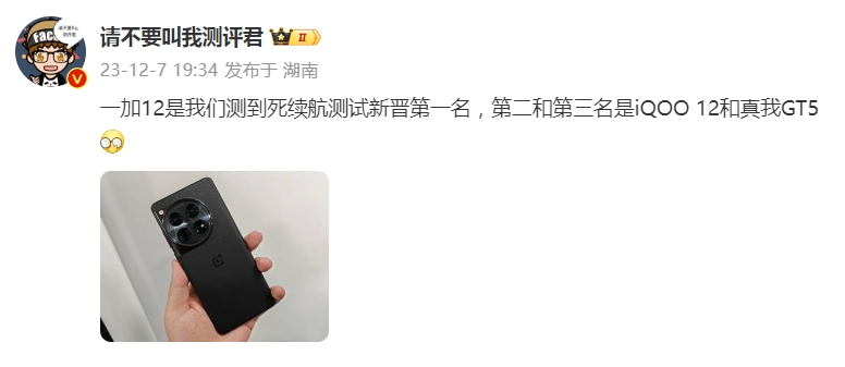 随着大家对续航的注重,厂商们打造产品时也有所侧重,最近发布上市的一众骁龙 8 Gen 3旗舰,不约而同都增加了电池容量,并提升充电功率,满足大家对续航日益提升的需求。在博主请不要叫我评测君的测试中,一加12成为测到死续航测试新晋第一名,续航表现令人惊喜,它在12月11日的首销中更是创下不俗战绩,被很多人当做换机的首选。