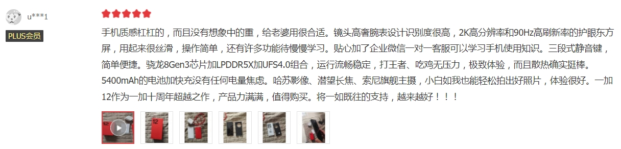 此外,一加12首发的2K+东方屏,不仅拥有多项一线水准的屏幕素质,还支持LTPO动态帧率,能根据使用场景在1Hz-120Hz的刷新率智能切换,在日常使用中大幅降低高刷屏幕带来的高功耗,以更低功耗获得更久的续航表现。在首批用户评价中,也收获了很高的评价,大家普遍认为“一加12的5400mAh的电池加快充没有任何电量焦虑”、“电池大、充电快”、“告别了续航焦虑”。