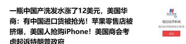 目前在美国超市,中国制造的洗发水已经涨到了12美元。