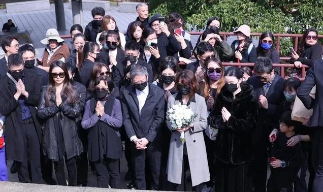 虽然是名人,但琼瑶的葬礼并不喧哗,现场有笛子队,参加的圈内艺人不多,林心如一身黑衣早早到场,还有俞小凡和李翊君也参加了,很多艺人则送了花圈。