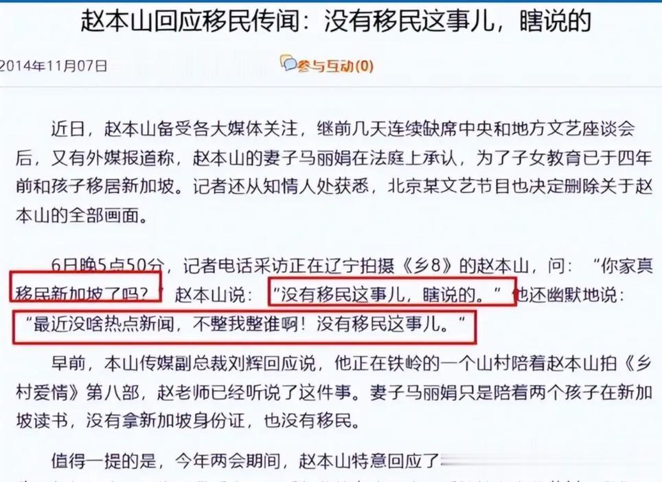 这个传闻的起因,只是赵本山的妻子马丽娟前往新加坡,陪伴子女在当地求学,属于正常的家庭陪读行为,