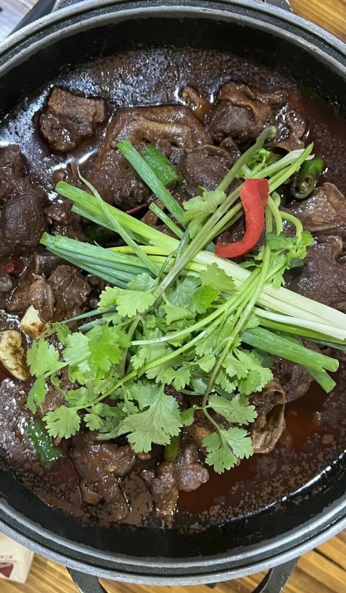 “血浆”是这道菜的灵魂所在,鸭肉爆炒后,倒入新鲜的鸭血搅拌均匀,血浆包裹着鸭肉,鲜嫩多汁,汤汁浓郁不油腻。