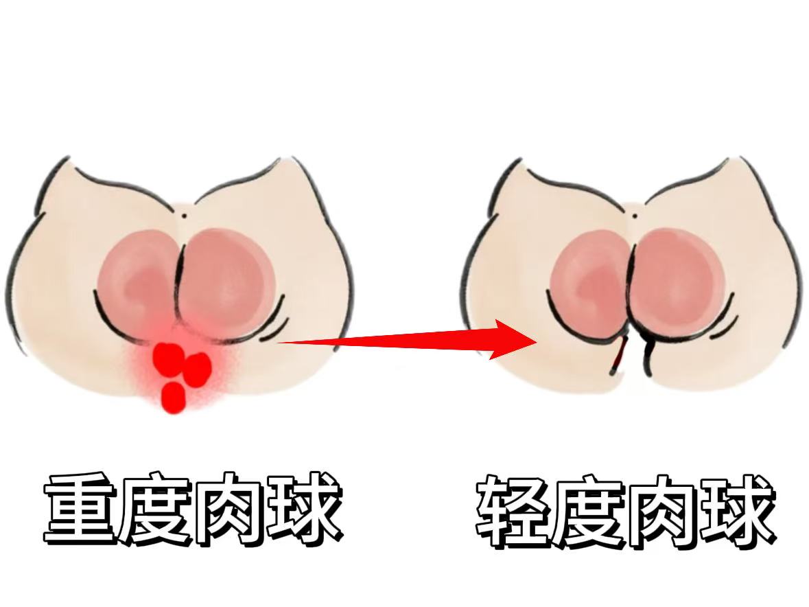 1周后坠胀感减轻,排便顺畅无刺痛,肉球明显变软缩小;