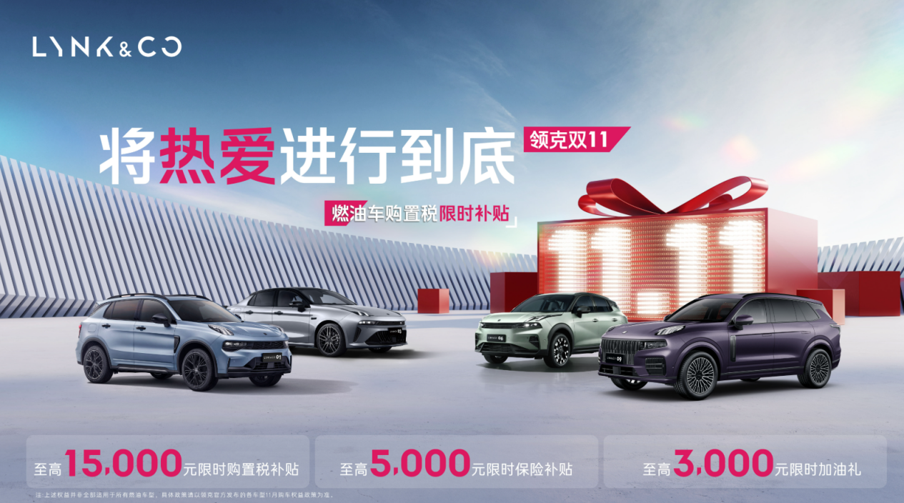 此次领克推出的限时购车政策,具体为 2025 年 11 月 30 日(含)前下订领克燃油家族任一版型并完成提车的用户,领克将提供至高15000元购置税补贴,至高5000元保险补贴,至高3000元加油礼遇。此外,11 月 15 日至 16 日期间,用户前往领克 4S 店参与线下团购会,可额外获得千元优惠。