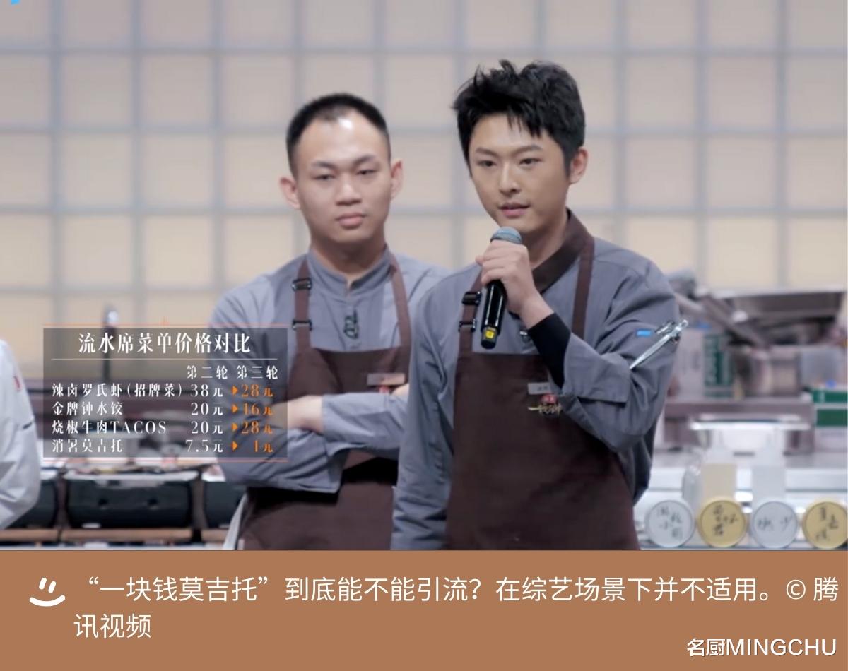 “一块钱莫吉托”到底能不能引流?答案其实是可以的。但在综艺场景中,产品和餐厅是并不绑定的,消费者可以在流水席买饮品,在其他餐厅中购买料理。而帅小厨的小馆,就来得聪明地多。在提供双瓜汁的同时,说明与红烧肉的相互匹配,将流量转化为实际的销售额。