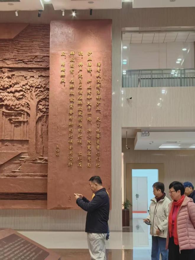 在陈列大厅,有一面石刻,上面印刻着焦裕禄的临终遗愿:“我死后只有一个要求,要求党组织把我运回兰考,埋在沙丘上。活着我没有治好沙丘,死了也要看着你们把沙丘治好!”
